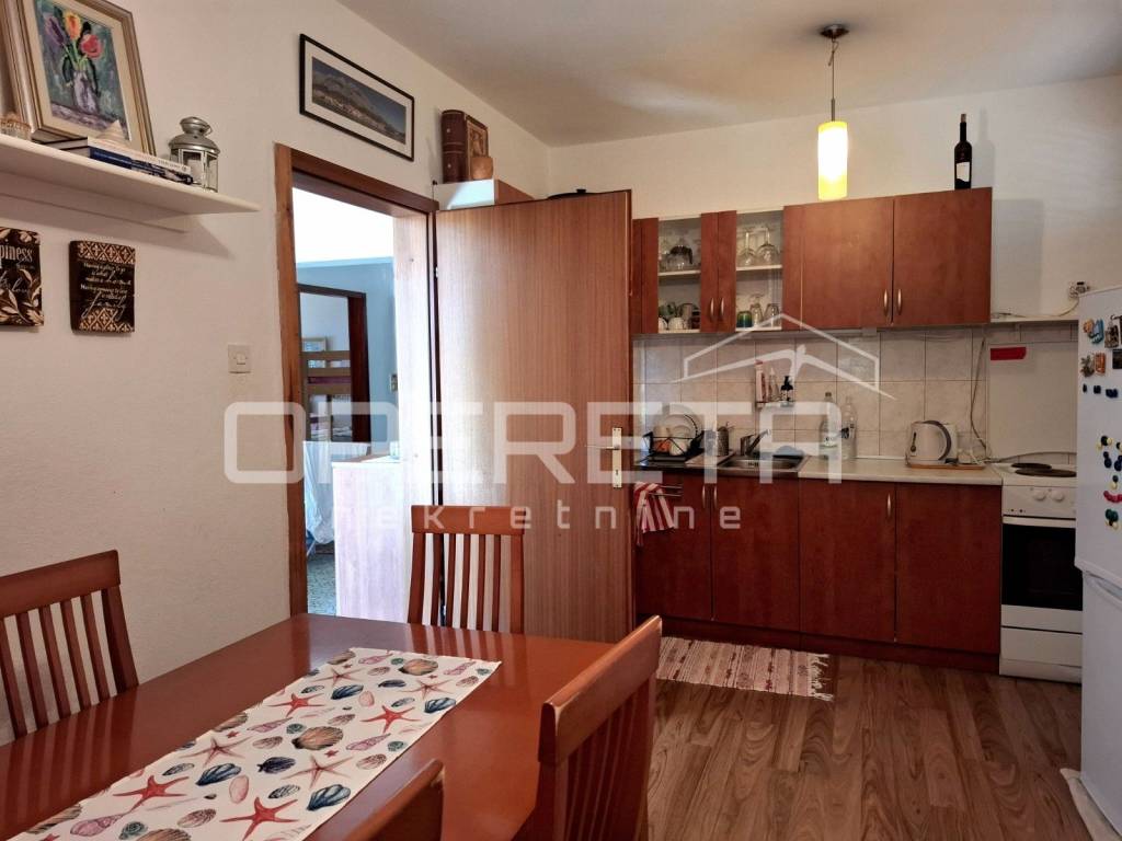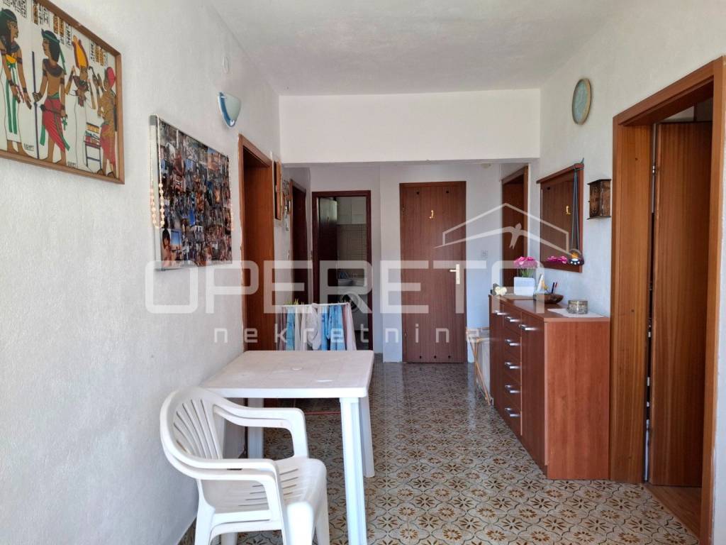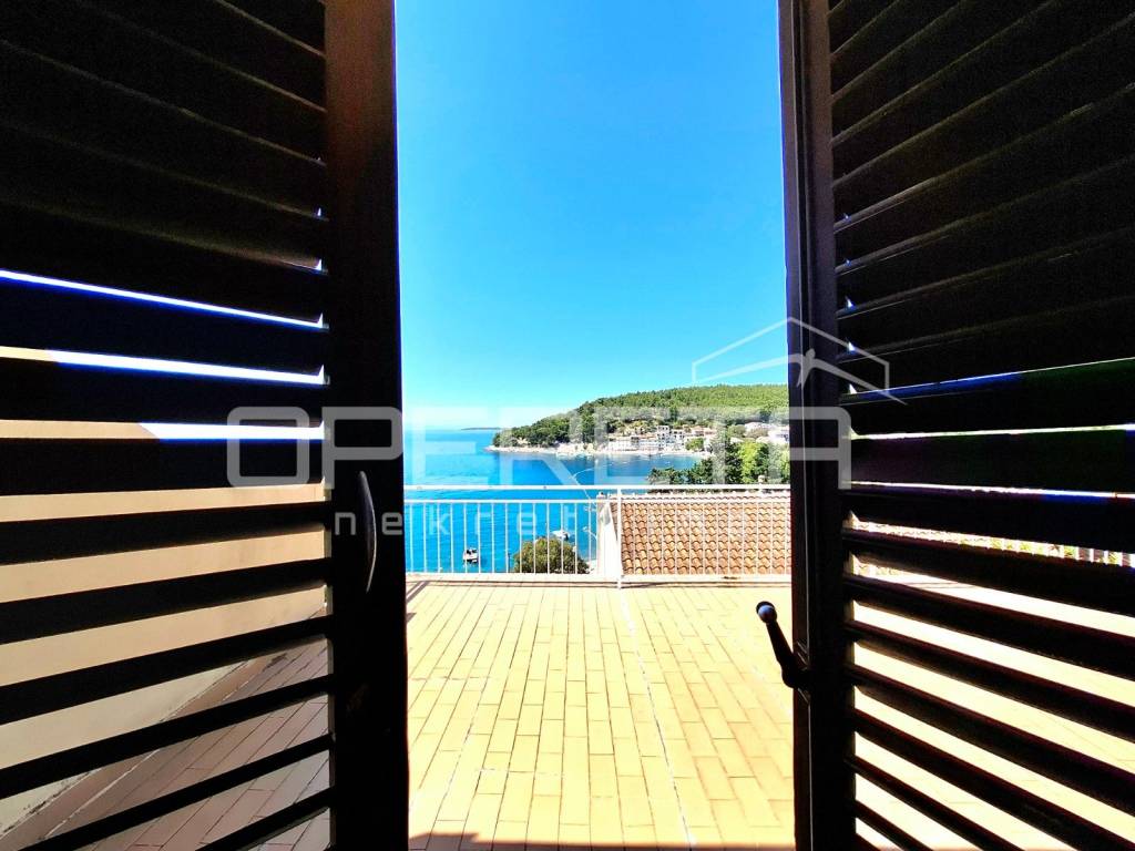 Stan na katu ima dvije spavaće sobe, kuhinju, kupaonicu, zaseban toalet i prostrani ulazni prostor. Dnevni dio vodi na veliku terasu s nezaboravnim pogledom na more i cijelu uvalu.
