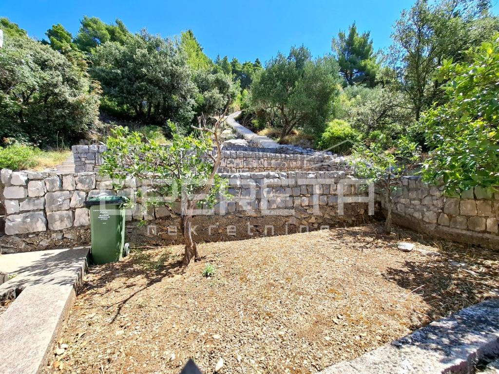 Kuća je okružena uređenom okućnicom s popločanim površinama i mediteranskim raslinjem, stvarajući idealan ambijent za privatnost i uživanje u mirnom okruženju.
