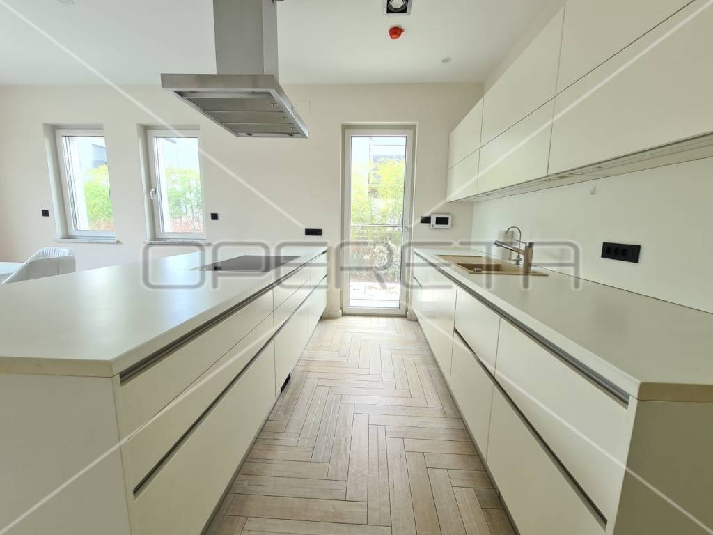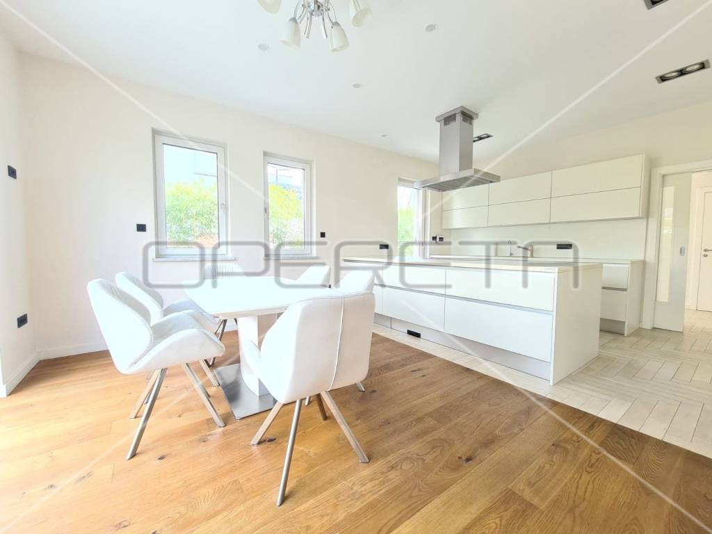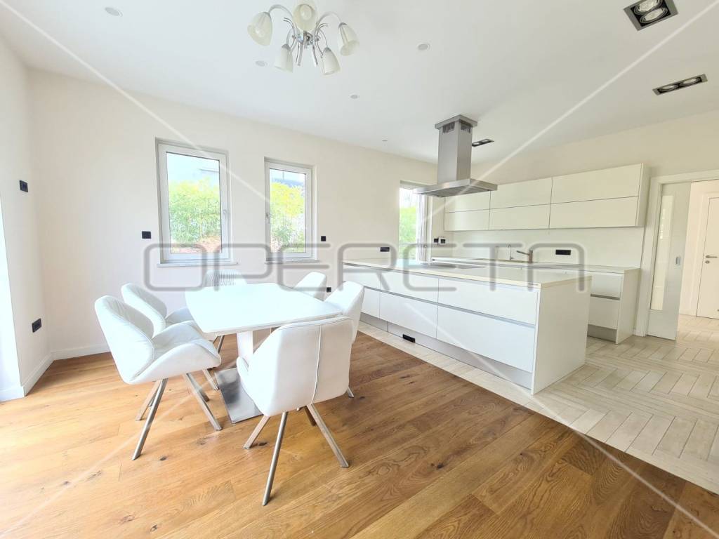 U prizemlju se nalazi luksuzna kuhinja (DAN, aparati Miele uz dodatne aparate - parnu pećnicu, indukcijska ploča, hladnjak za pića/vino.)