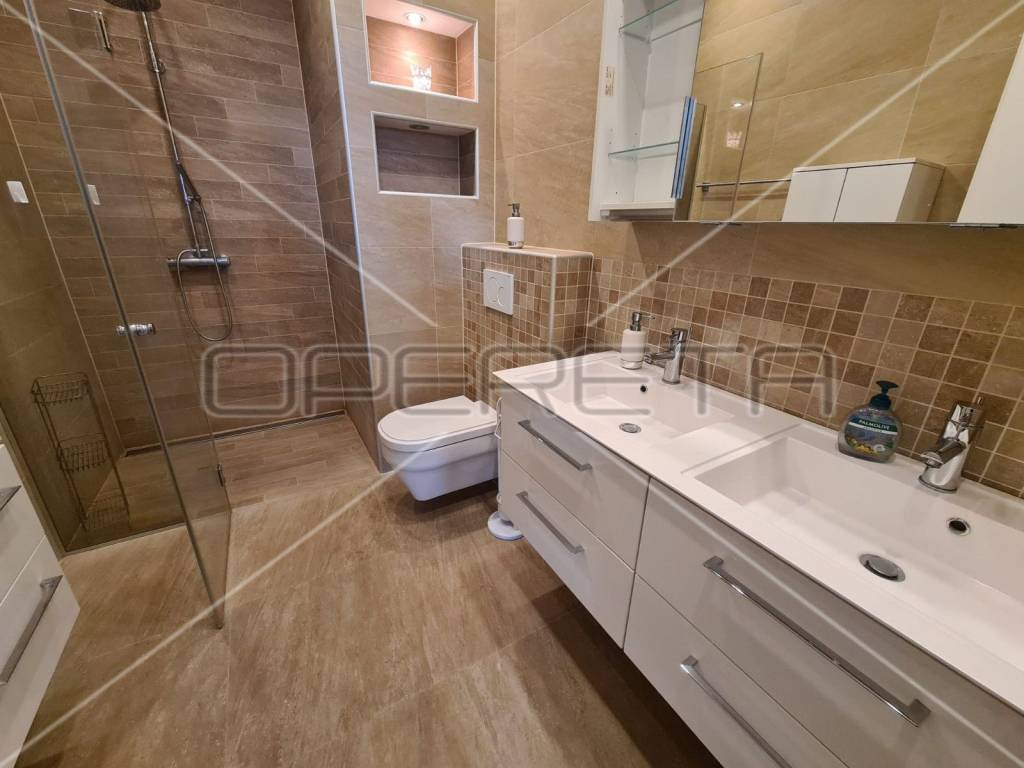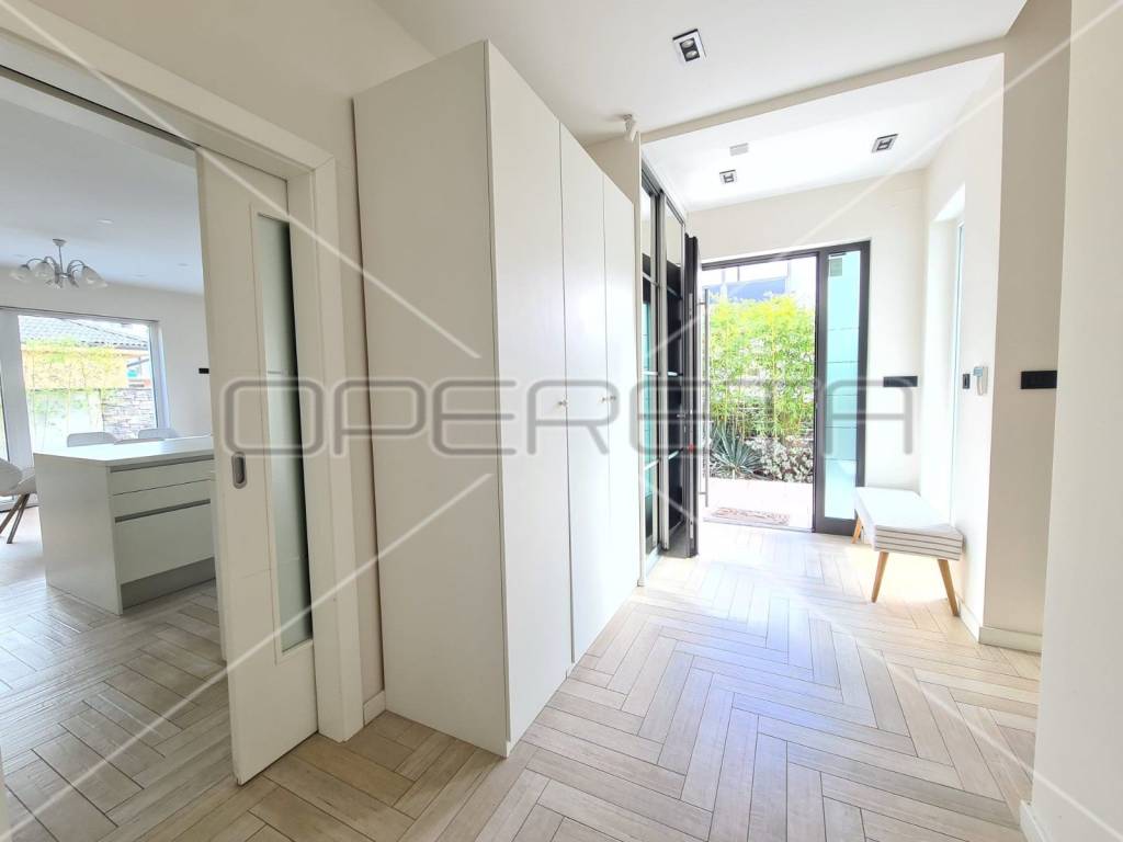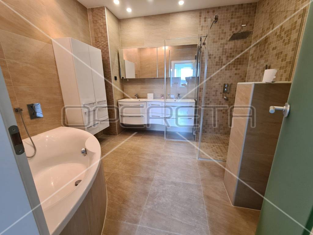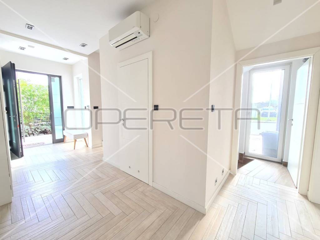 Grijanje je u svim prostorijama podno (uključujući i podrum), etažno plinsko sa zasebnim termometrima za reguliranje temperature u svakoj prostoriji, inverterskom klimom, centralnim usisavačem, video portafonom, video nadzorom, alarmom s protupožarnim dojavljivačem, internet i TV priključci u svakoj prostoriji (ukljucujuci podrum), vrhunskom stolarijom sa visokim stupnjem zaštite od provale, te topliinskom i zvučnom izolacijom (toplinski koeficijent 0,6), elektricnim roletama, komarnicima, ugradbenim ormarima, otvaranjem ulaznih vrata na otisak prsta, led rasvjetom...