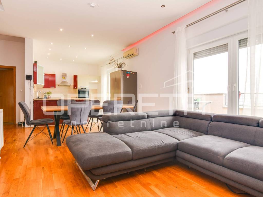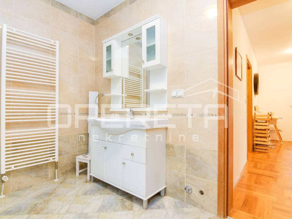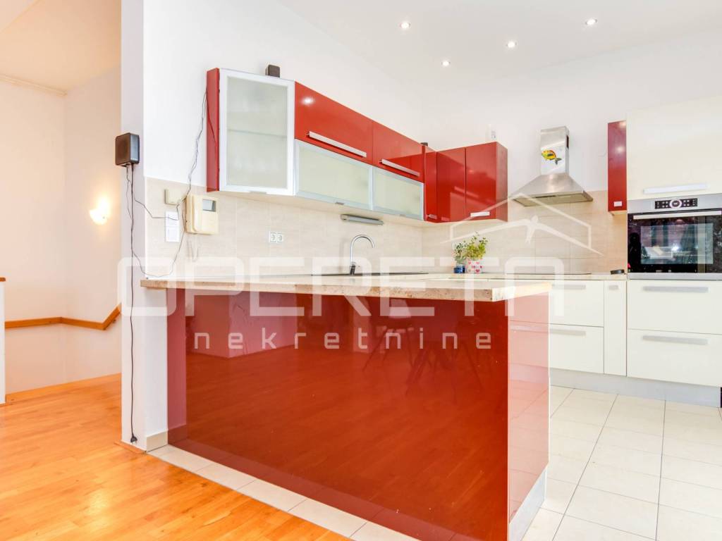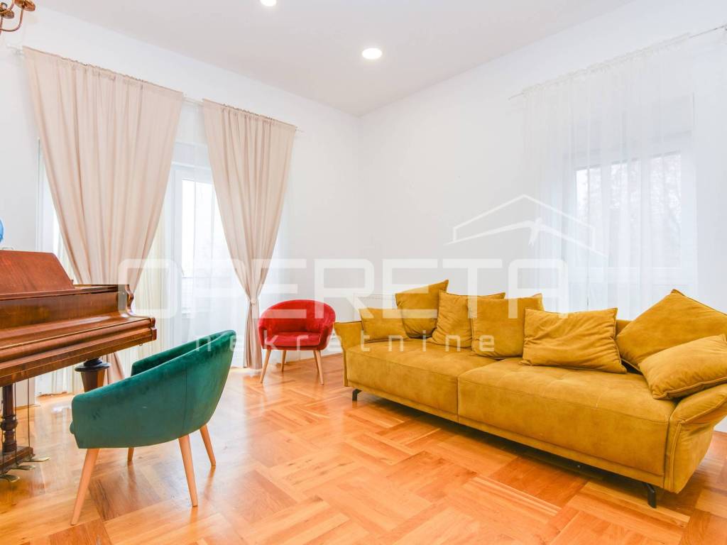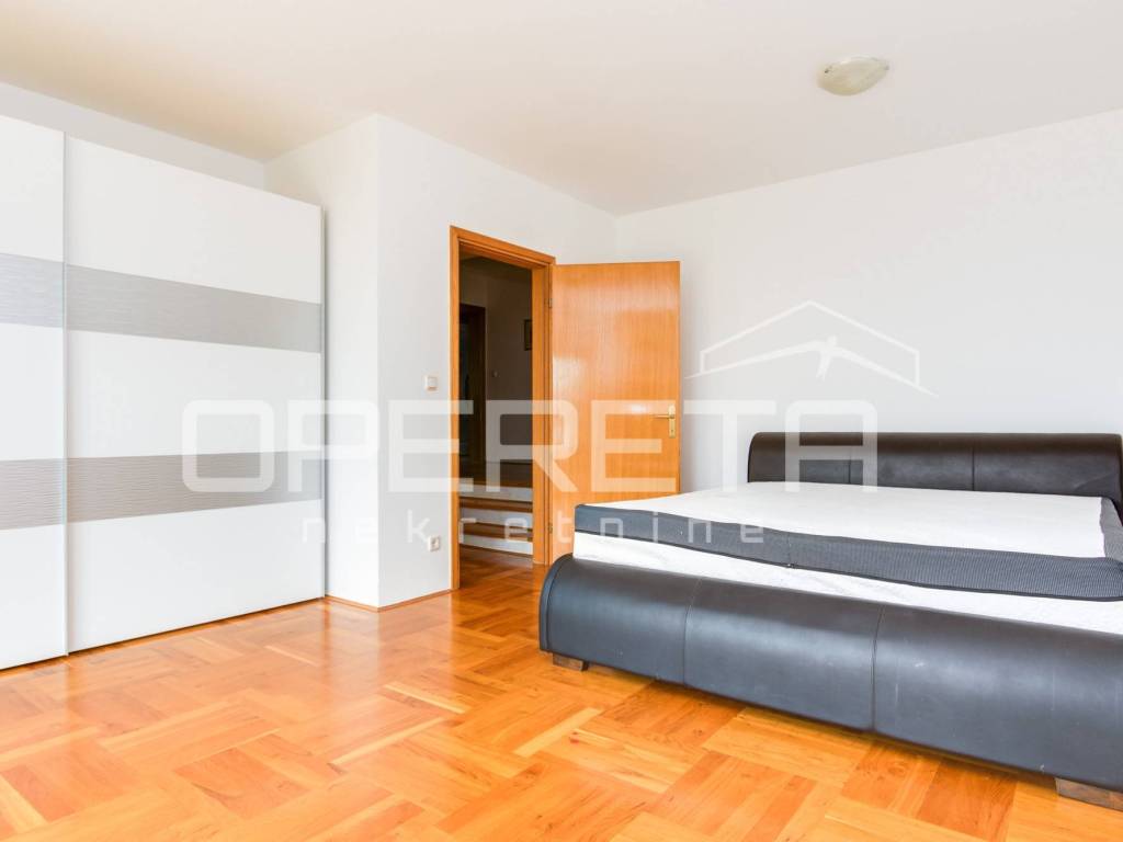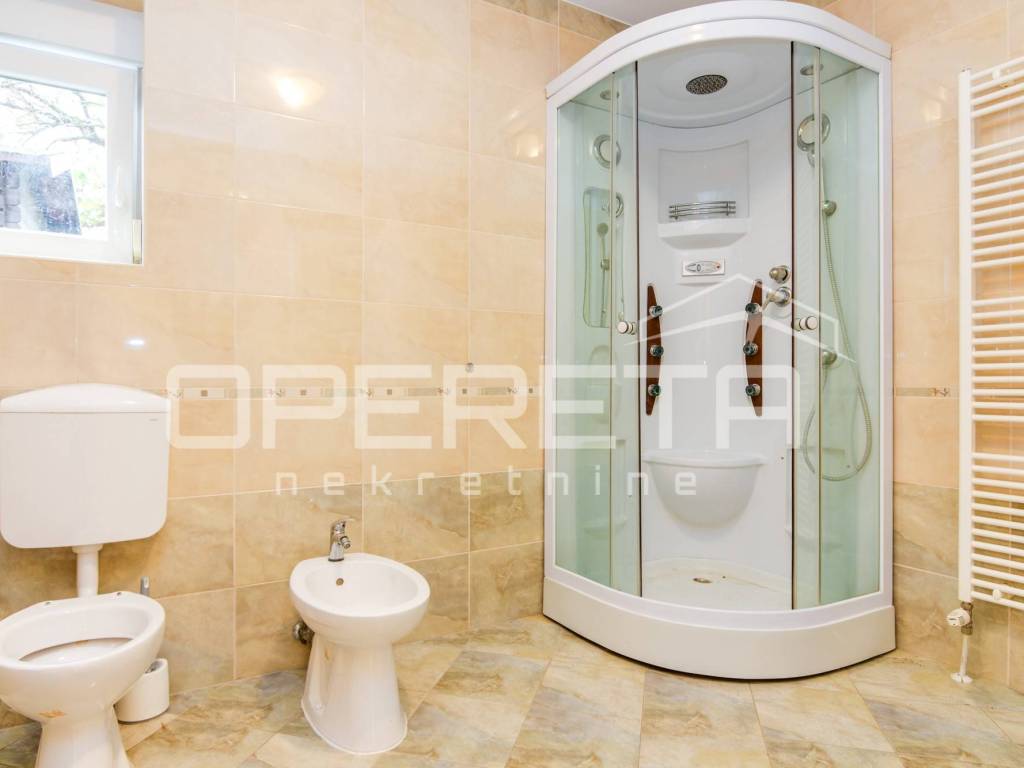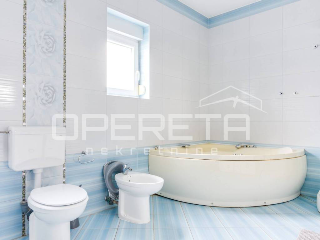 Iznajmljuje se kuća u Šestinama, površine 400 m2 s okućnicom od 667 m2 i četiri parkirna mjesta. Kuća se prostire na tri etaže: