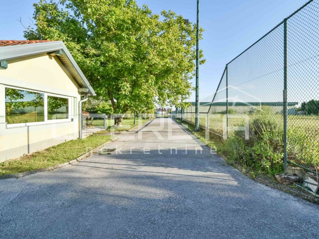 Imanje nudi i dodatna dva objekta/spremišta, dva teniska igrališta i nadstrešnicu. U središtu hortikulturno uređenog dijela nalazi se bunar.