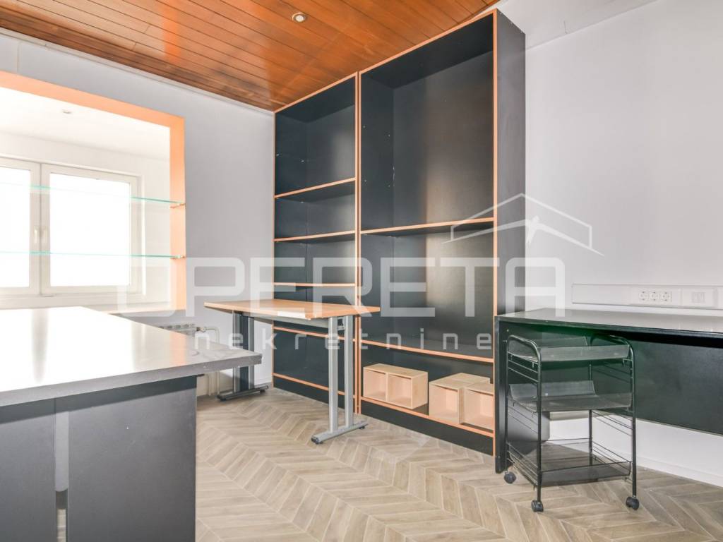 Sastoji se od 11 većih i manjih prostorija pogodnih za urede ili stanovanje , 4 WC-a i 3 kupaonice raspoređene na obje etaže. Smještena je na uređenoj parceli sa dvorištem i parkiralištem za 6 automobila. Kroz godine je korištena kao poslovni prostor tvrtke za proizvodnju uredskog materijala, što je čini pogodnom za slične djelatnosti, coworking prostore ili edukacijske centre. Nalazi se na odličnoj lokaciji, u neposrednoj blizini NSB-a i dvorane Lisinski, javni prijevoz je na svega par minuta pješice. Cijena 4000 Eura +PDV.