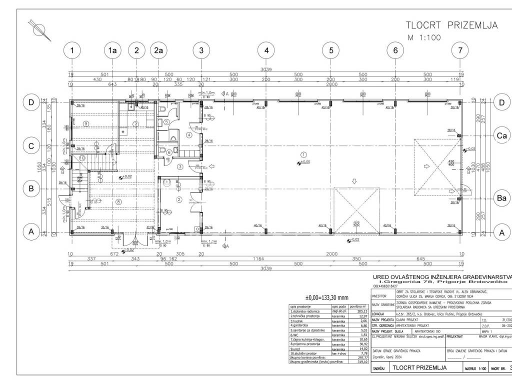 Ukupna površina objekta: 510 m, koji se sastoji od:
