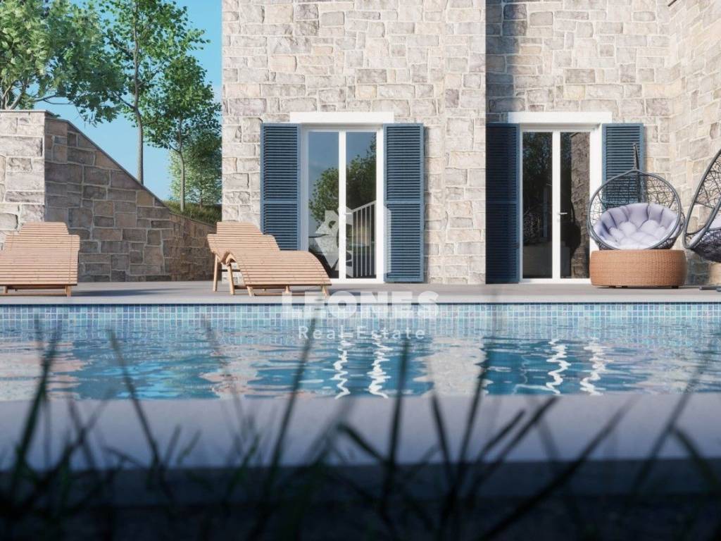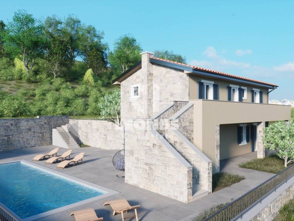 Prodaje se predivna kuća s bazenom u mirnom okruženju u okolici Buja - Momjan. Kuća se prostire na dvije etaže. Prizemlje se sastoji od hodinka, prostranog dnevnog boravka, kuhinje s blagovaonicom, spremišta i wc-a. Prvi kat se sastoji od 3 spavaće sobe od kojih svaka ima svoje kupatilo kao i izlaz na terasu s koje se pruža predivan pogled na zelenilo i istarski krajolik. Na okućnici je smješten veliki bazen od 35 m2 sa sunčalištem i ljetna kuhinja.