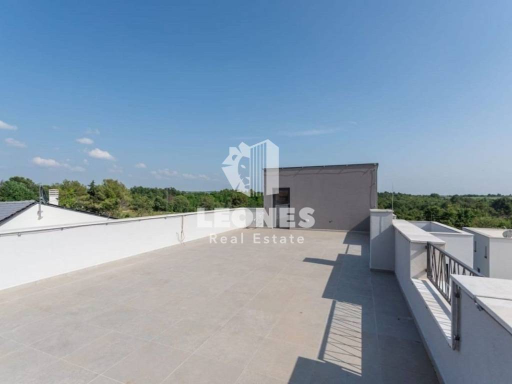 Prodaje se prostran stan u novogradnji u okolici Poreča. Stan se nalazi na prvome katu zgrade sa samo 4 stambene jedinice. Površina stana je 94 m2 te se sastoji se od predsoblja, kuhinje s blagovaonicom i dnevnog boravka, 3 spavaće sobe, kupatila, toaleta, spremišta od 5 m2 te velike krovne terase od 160 m2.