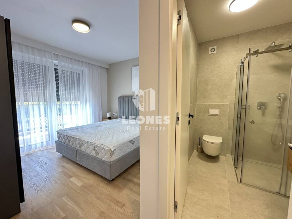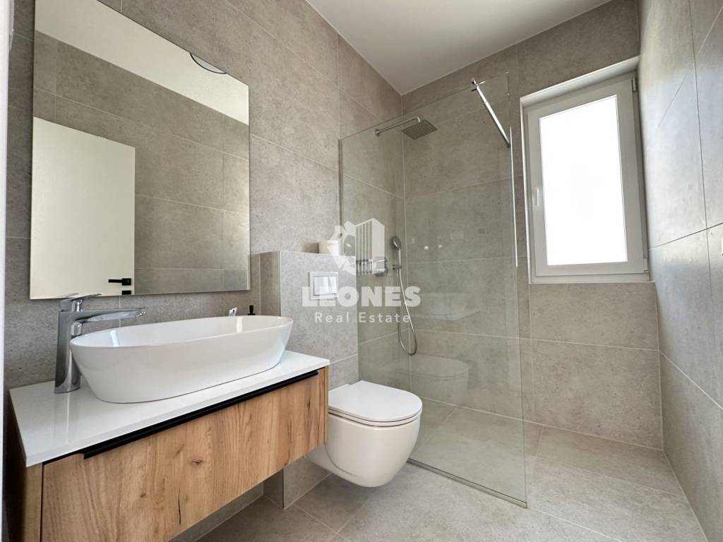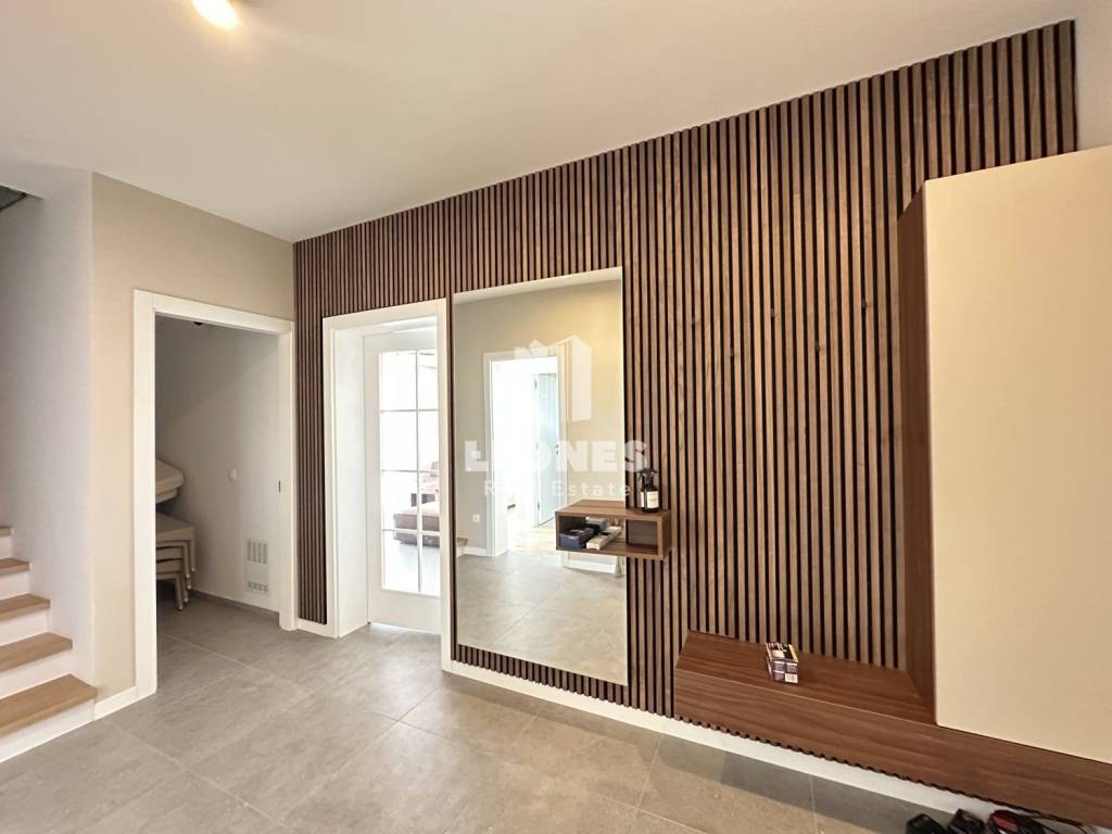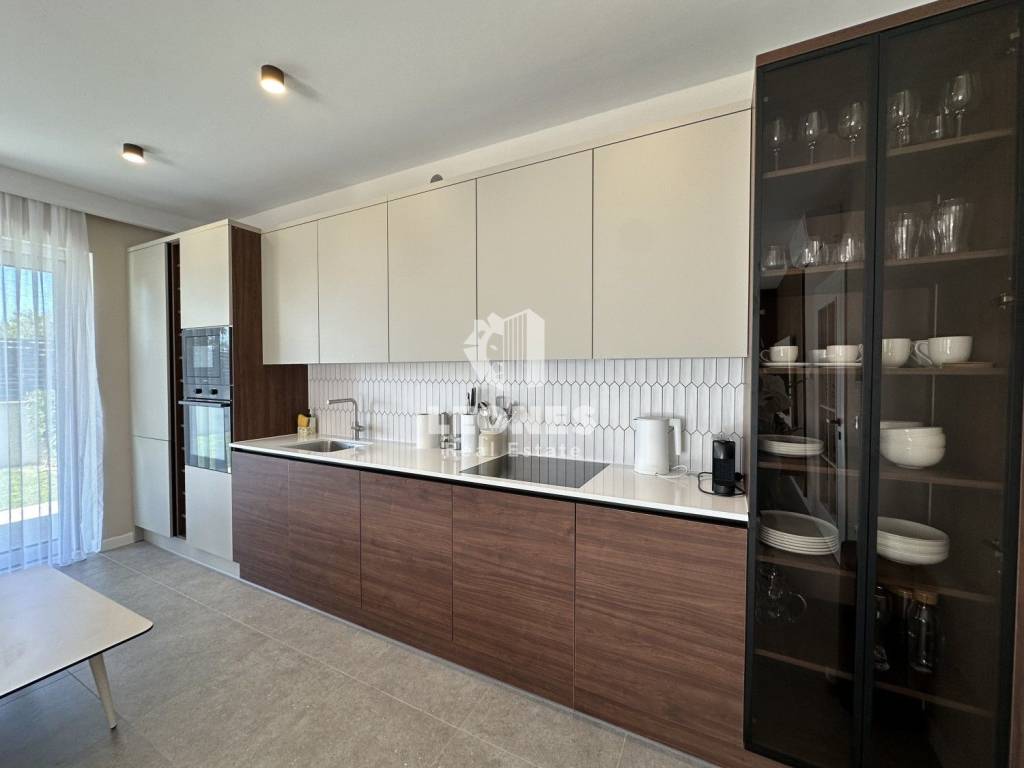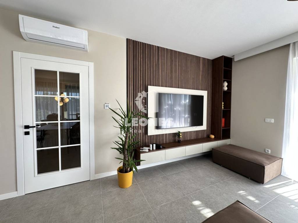 Ovaj moderno uređeni stan ima 144m2 te se sastoji od ulaznog hodnika, kotlovnice s malim wc-om, spavaće sobe s kupaonicom, ostave te predivnog open space dnevnog boravka s kojeg se pruža pogled na uređeno dvorište i bazen.