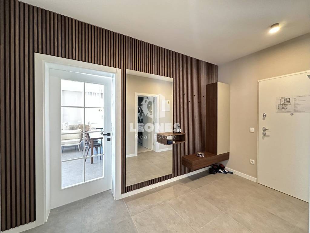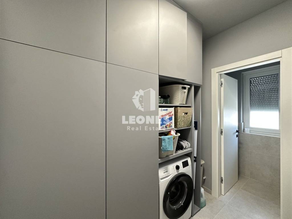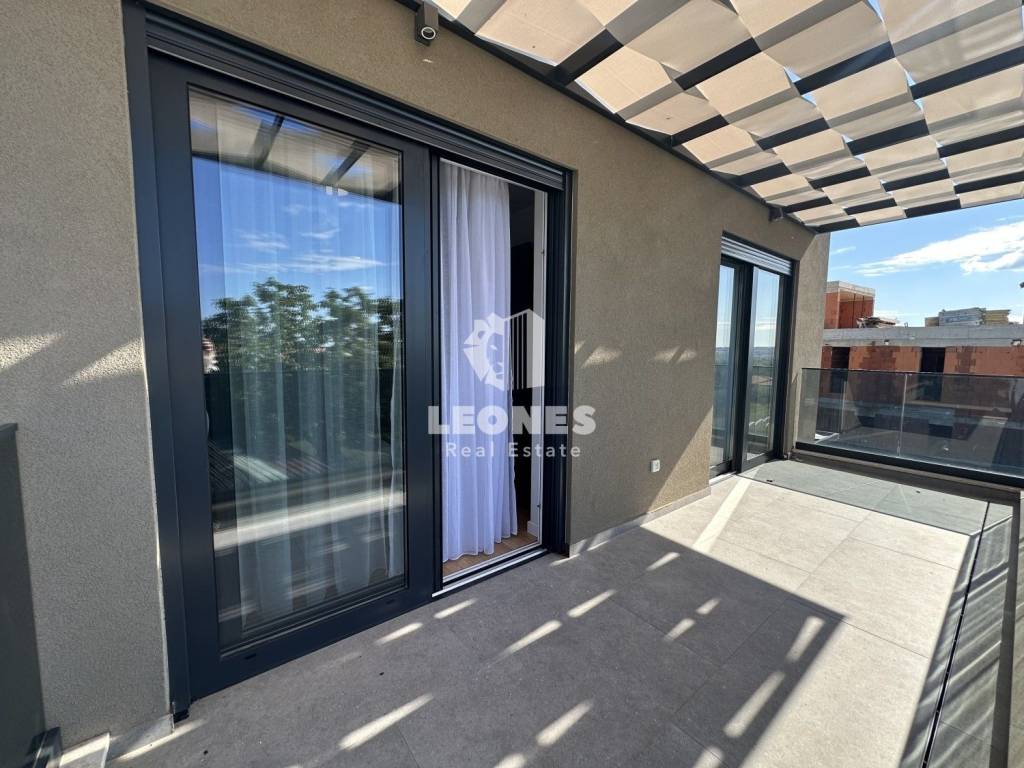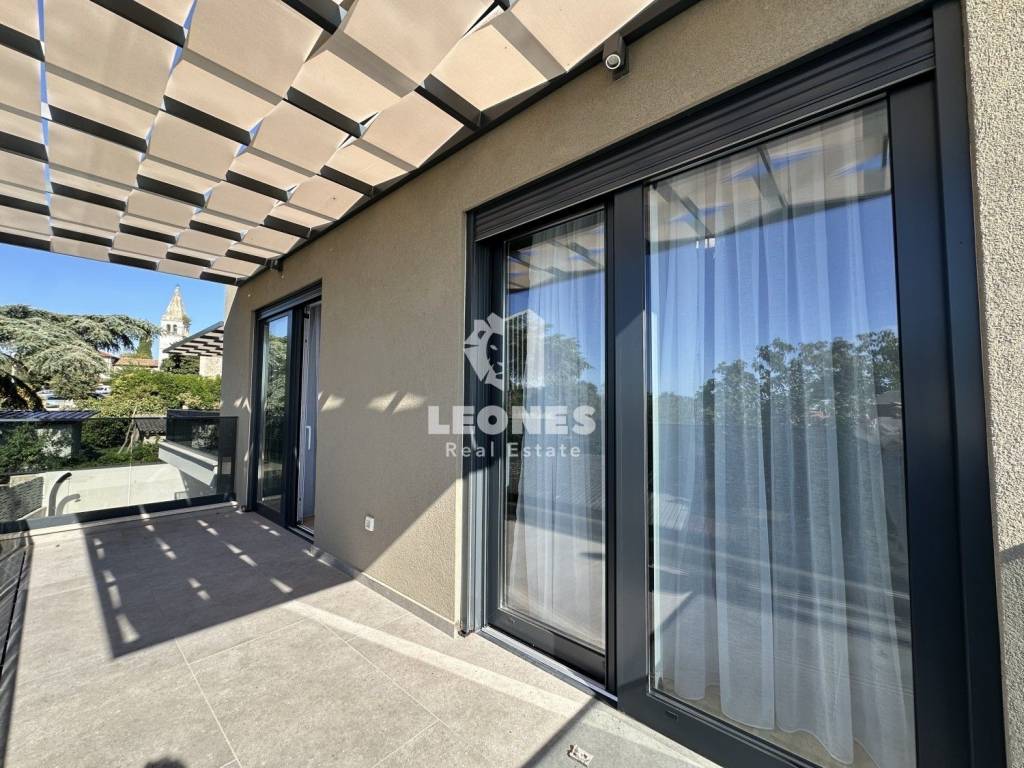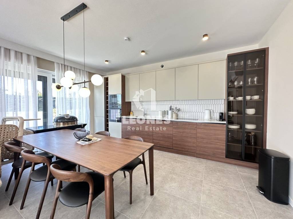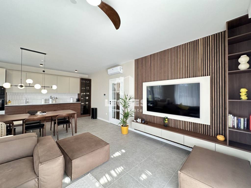 Ovaj moderno uređeni stan ima 144m2 te se sastoji od ulaznog hodnika, kotlovnice s malim wc-om, spavaće sobe s kupaonicom, ostave te predivnog open space dnevnog boravka s kojeg se pruža pogled na uređeno dvorište i bazen.
