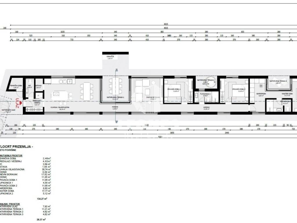 Prodaje se simpatično građevinsko zemljište s projektom prizemne kuće u blizini Umaga. Površina zemljišta je 592 m2. Svi su priključci u blizini.