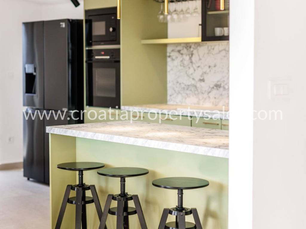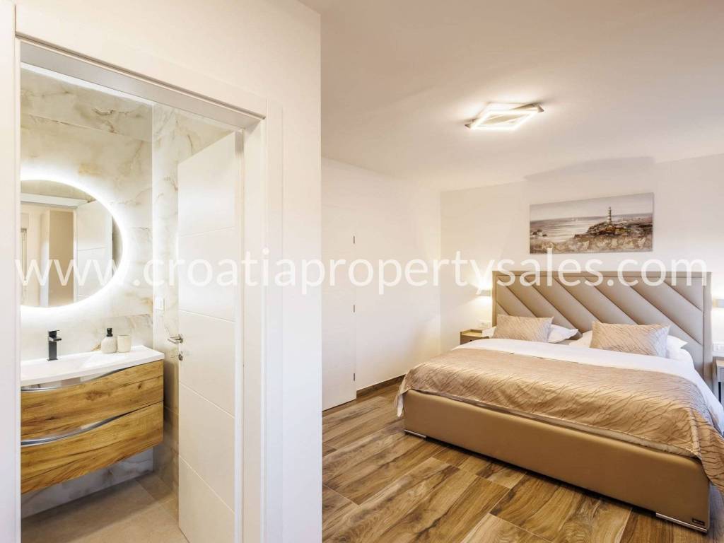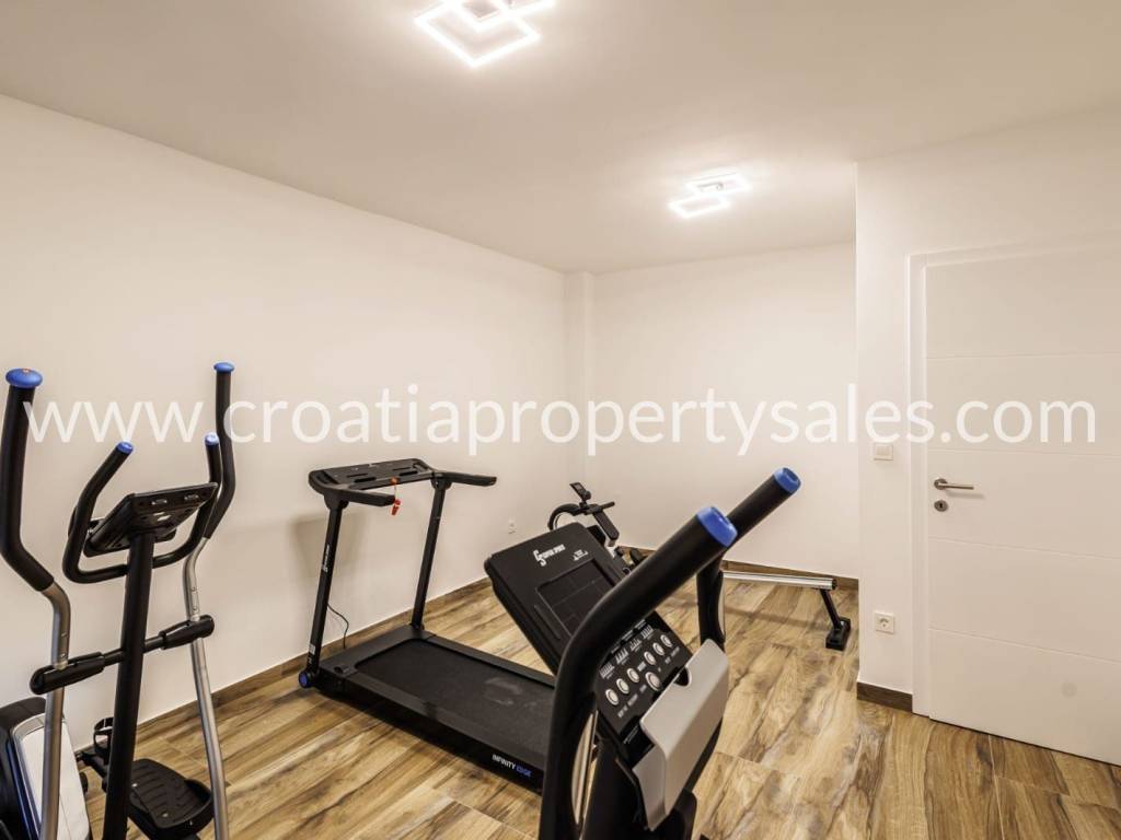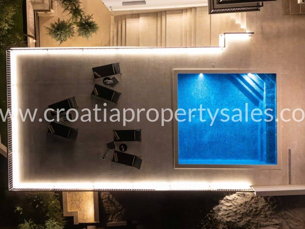 U mirnom ribarskom selu nadomak mora smještena je prostrana i funkcionalna nekretnina idealna za one koji traže privatnost, komfor i prirodno okruženje. Sastoji se od dvosobnog apartmana te dvoetažnog apartmana koji uključuje tri spavaće sobe i prostranu igraonicu. Na gornjoj etaži nalaze se dodatne dvije sobe, teretana i priprema za saunu. Objekt je potpuno namješten i klimatiziran, te spreman za korištenje bez dodatnih ulaganja. Okućnica površine 1116 m2 pažljivo je uređena i opremljena brojnim sadržajima koji omogućuju potpunu relaksaciju i uživanje. Na raspolaganju su bazen sa sunčalištem, vanjski jacuzzi, natkriveni prostor s roštiljem, teren za rekreaciju te dovoljno parkirnih mjesta za više vozila. Cijela parcela pruža osjećaj privatnosti, dok se more i svi potrebni sadržaji nalaze na dohvat ruke.