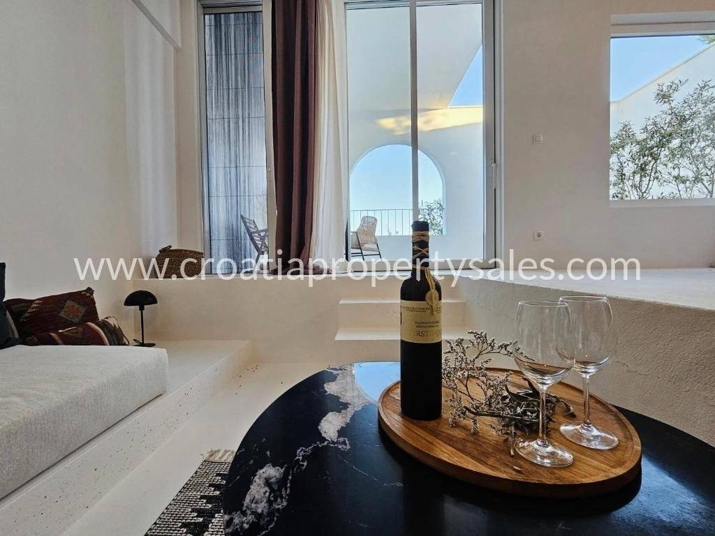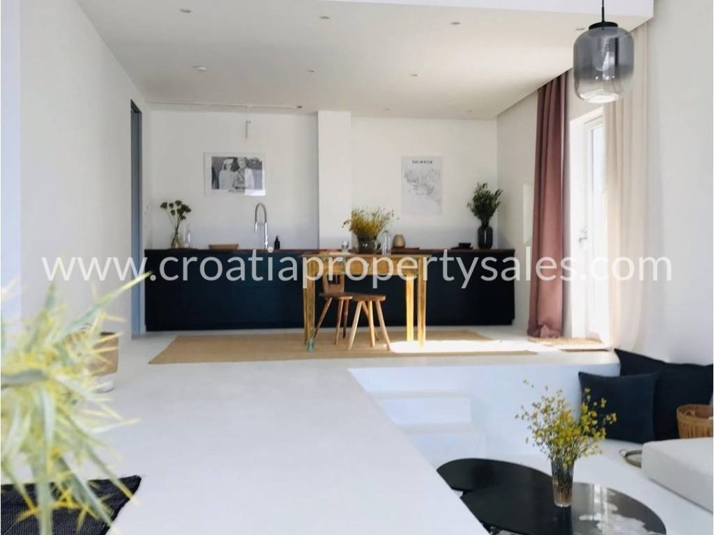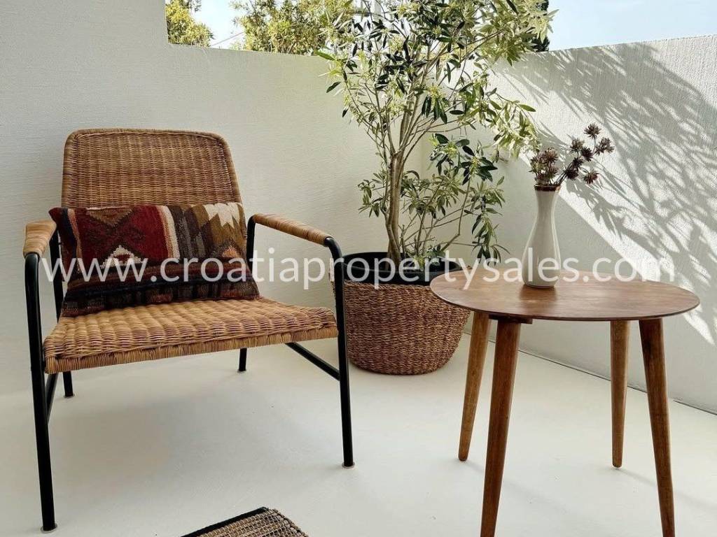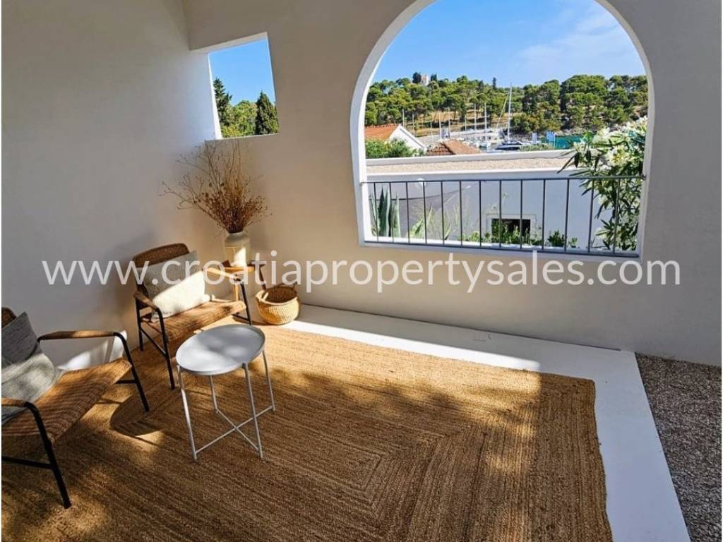 Prelijepa vila u mediteranskom stilu na jedinstvenoj lokaciji na otoku. Na 433 m2 na savršeno su raspoređene tri etaže sa ukupno 200 m2 stambenog prostora. Vila se sastoji od četiri luksuzna apartmana pa može biti odlična investicija u turizmu, ali može biti i predivna obiteljska vila za stanovanje. Na prizemlju se nalazi dodatni prostor za stanovanje sa prostranim mediteranskim dvorištem i velikom vanjskom ljetnom kuhinjom.Na prvom i drugom katu se nalaze po dva apartmana, svaki sa svojom kupaonicom i balkonom sa pogledom na bajkovitu uvalu i more. Vila je izgrađena 2024 g. u jedinstvenom i modernom stilu, obasjana sunčevom svjetlošću, prozračna i uređena sa velikom ljubavlju inspirirana predivnim idejama te kompletno uređena i opremljena stilskim namještajem. Dva parkirna mjesta se nalaze iznad kuće, dva dodatna mjesta na južnoj strani. Nalazi se na mirnoj lokaciji na južnom dijelu malog, ali posebnog mjesta. Šljunčana plaža nalazi se na samo 3 minute hoda, kao i centar mjesta u kojem se nalaze trgovine, restorani i šetnica.