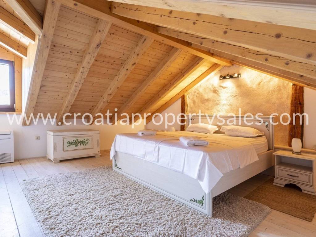 Unutarnje stubište vodi na zadnji kat, gdje se nalaze velika spavaća soba i kupaonica.