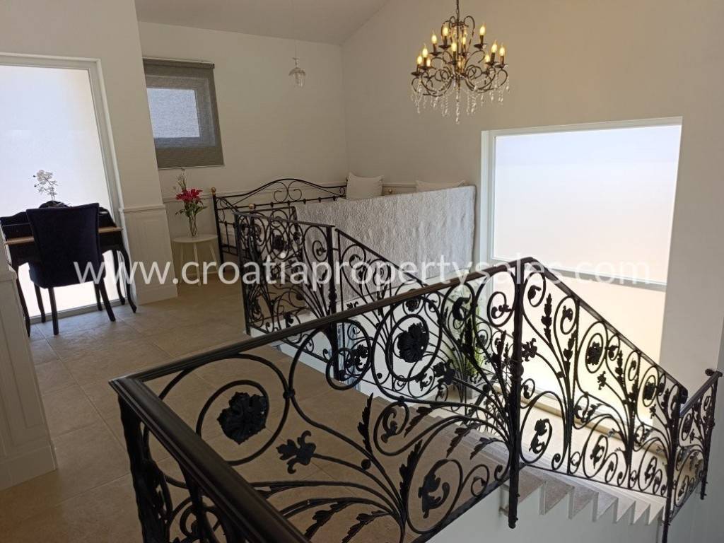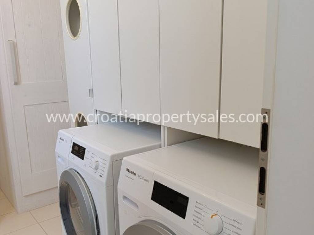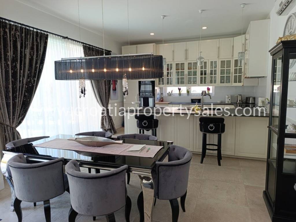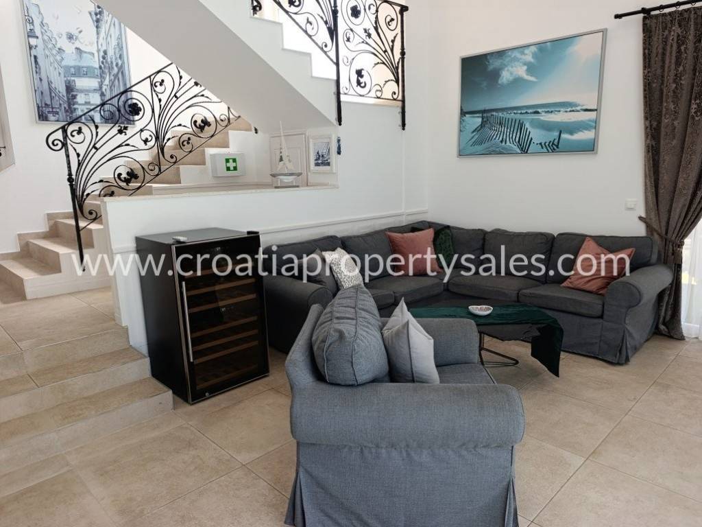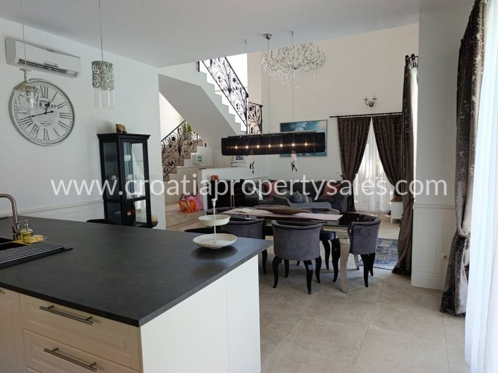 Luksuzno namještena kuća s bazenom. Kuća se sastoji od dva kata. Donja etaža ima privatni bazen od 26 m2. Vanjski prostor uređen je u mediteranskom stilu, prekrasno mjesto za opuštanje i sunčanje. Kuća je ekskluzivno namještena (klima uređaj koji hladi ljeti, a grije zimi) i posvećena je pažnja detaljima. Interijer je svijetao i privlačan, s puno svjetla. Pristup kući i privatno parkiralište za dva do tri automobila. Nekretnina je spremna za novog vlasnika za privatnu upotrebu ili kao investicija/najam.