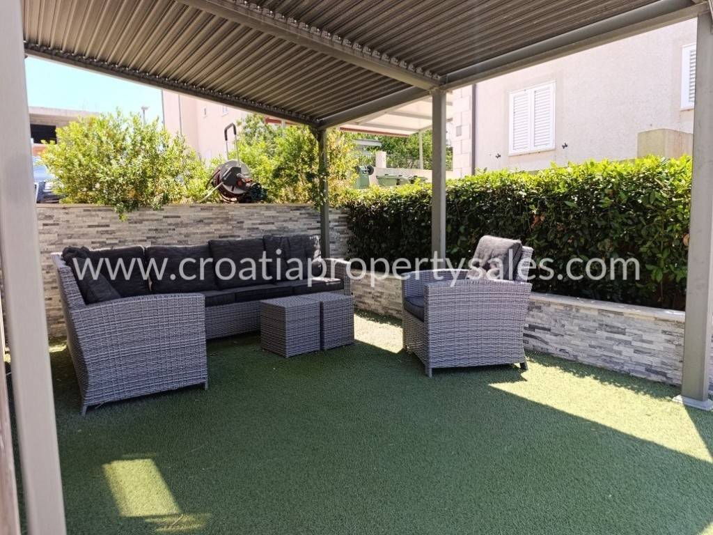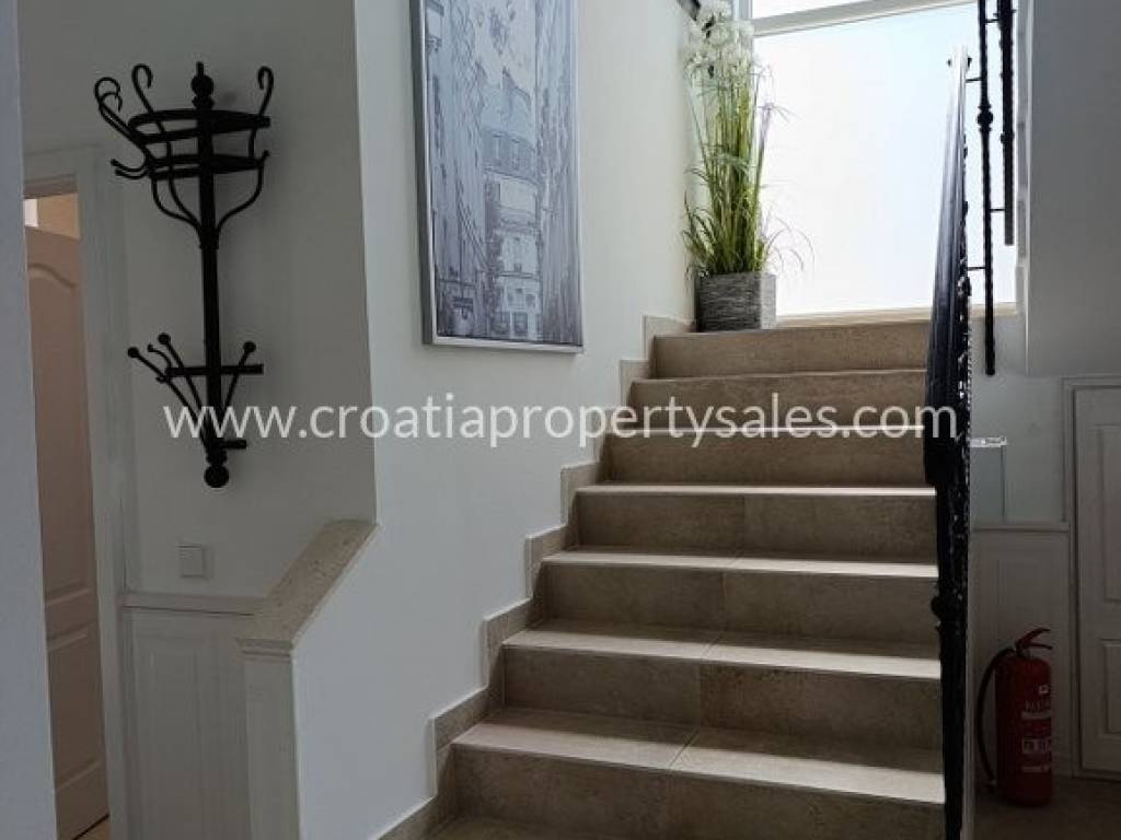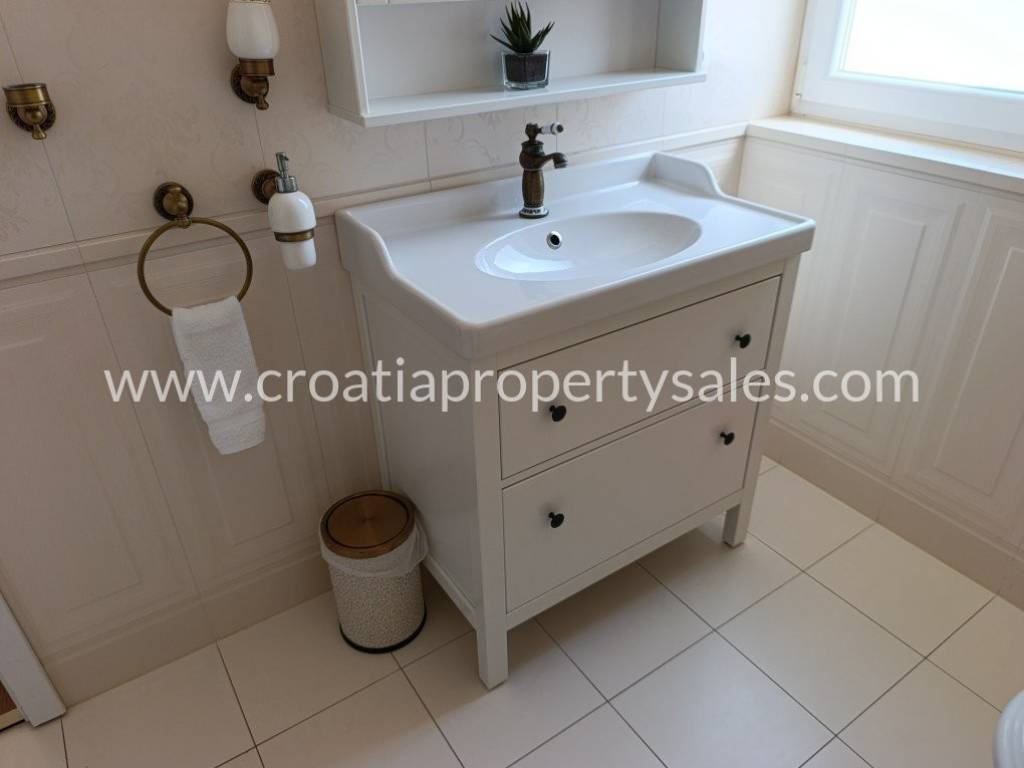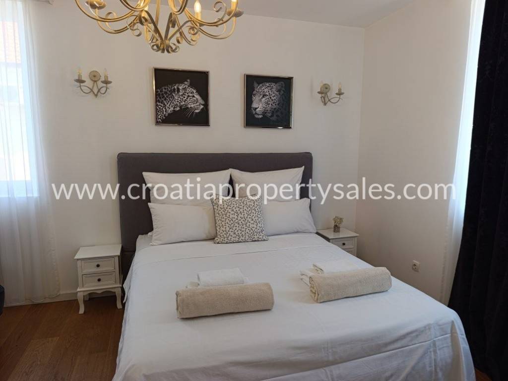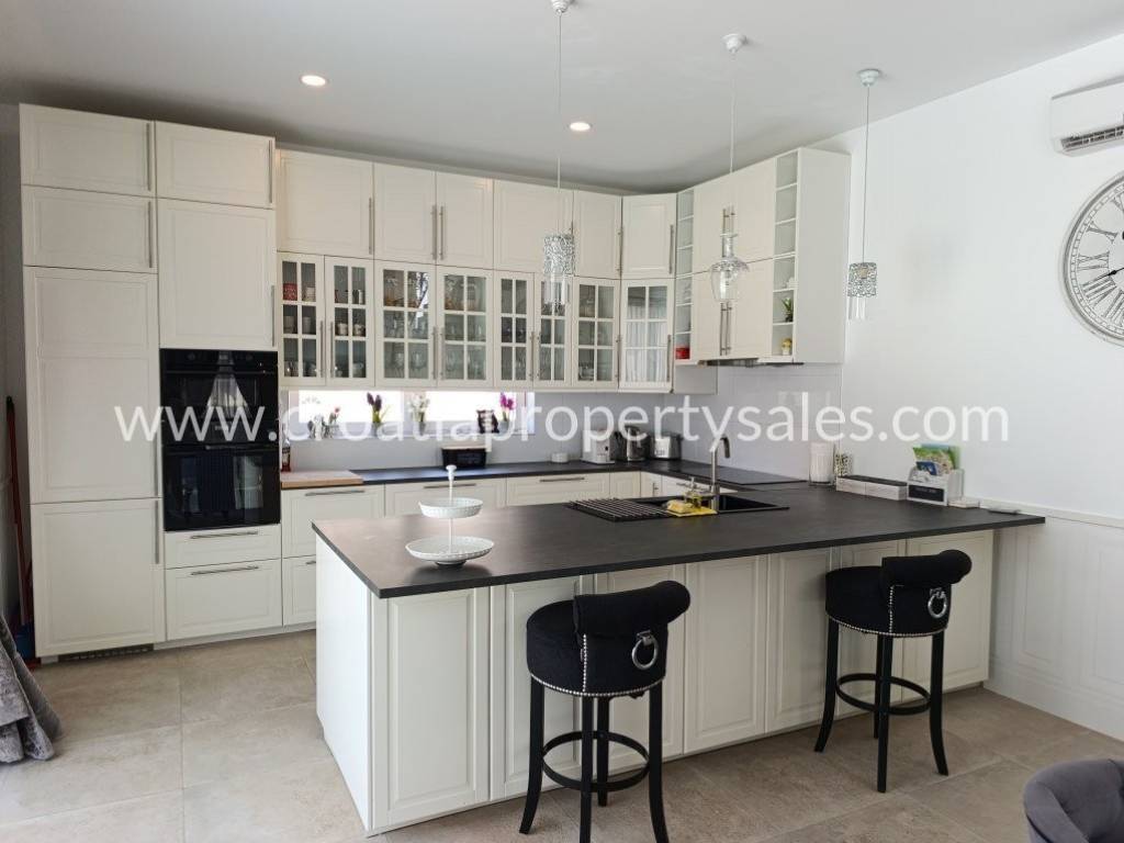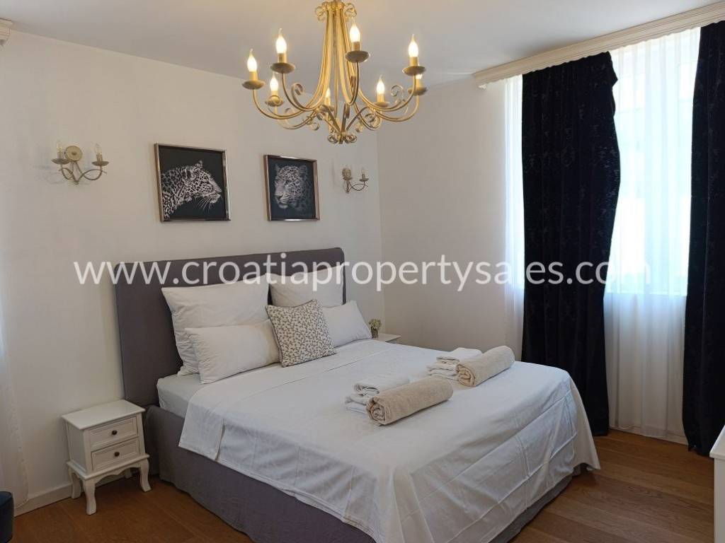 Luksuzno namještena kuća s bazenom. Kuća se sastoji od dva kata. Donja etaža ima privatni bazen od 26 m2. Vanjski prostor uređen je u mediteranskom stilu, prekrasno mjesto za opuštanje i sunčanje. Kuća je ekskluzivno namještena (klima uređaj koji hladi ljeti, a grije zimi) i posvećena je pažnja detaljima. Interijer je svijetao i privlačan, s puno svjetla. Pristup kući i privatno parkiralište za dva do tri automobila. Nekretnina je spremna za novog vlasnika za privatnu upotrebu ili kao investicija/najam.
