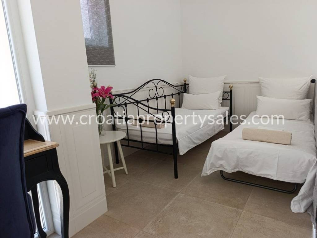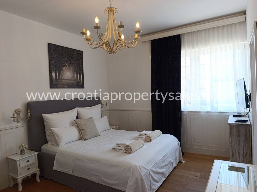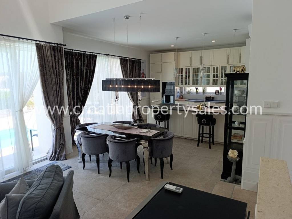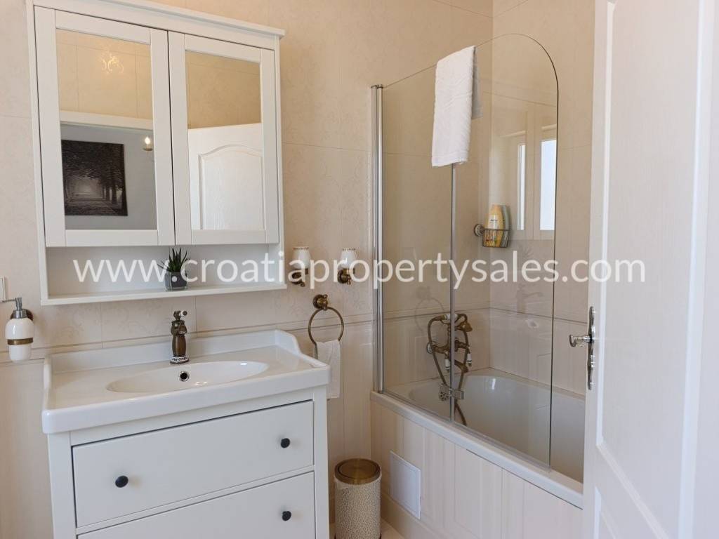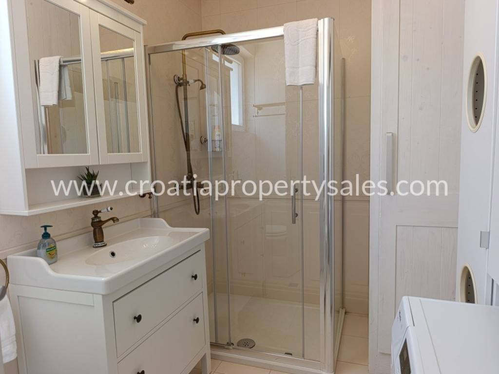 Luksuzno namještena kuća s bazenom. Kuća se sastoji od dva kata. Donja etaža ima privatni bazen od 26 m2. Vanjski prostor uređen je u mediteranskom stilu, prekrasno mjesto za opuštanje i sunčanje. Kuća je ekskluzivno namještena (klima uređaj koji hladi ljeti, a grije zimi) i posvećena je pažnja detaljima. Interijer je svijetao i privlačan, s puno svjetla. Pristup kući i privatno parkiralište za dva do tri automobila. Nekretnina je spremna za novog vlasnika za privatnu upotrebu ili kao investicija/najam.
