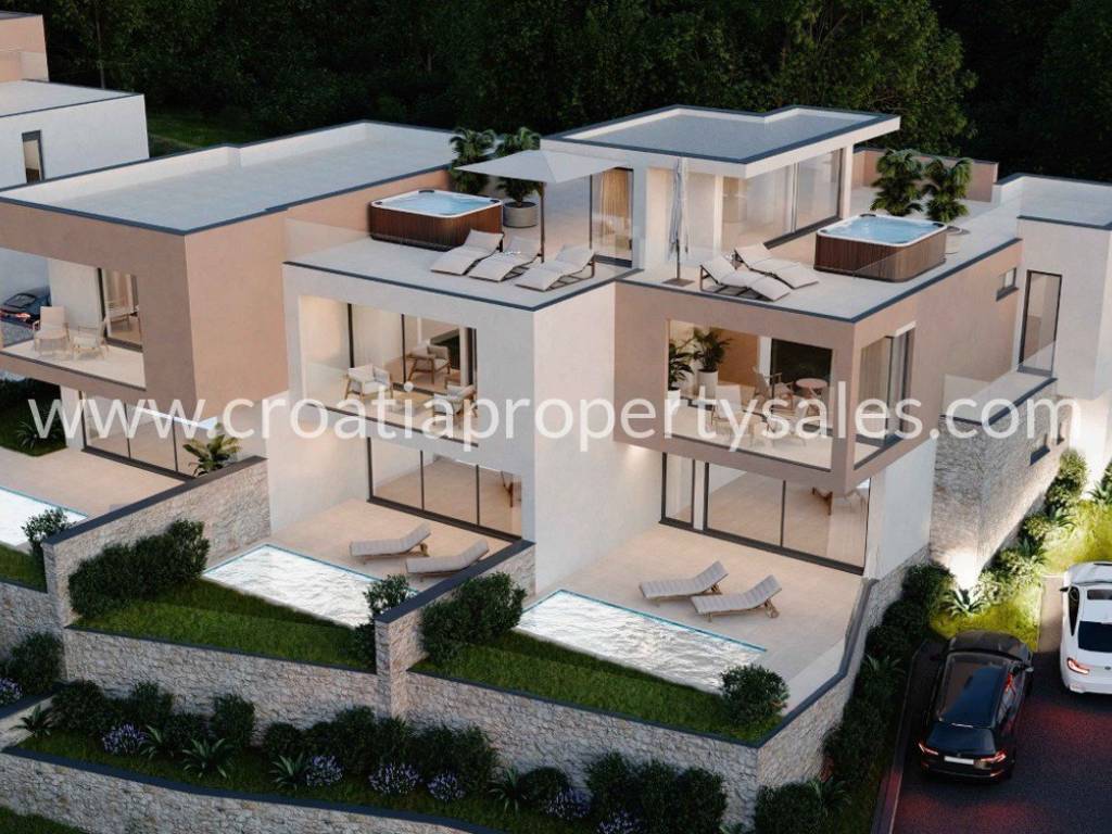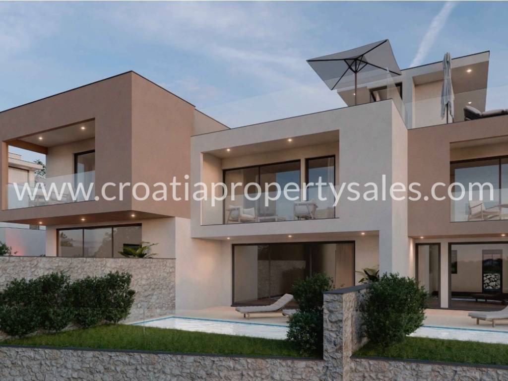 Novi projekt u gradu nedaleko od Šibenika koji se sastoji od 3 dvojne kuće svaka sa svojim bazenom, vrtom i parkingom.