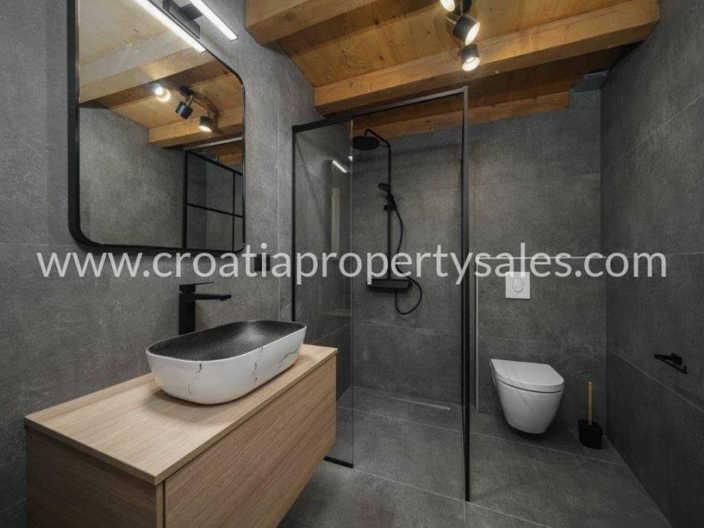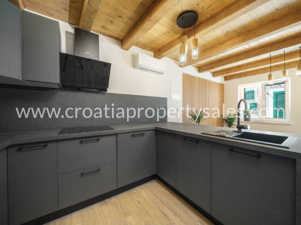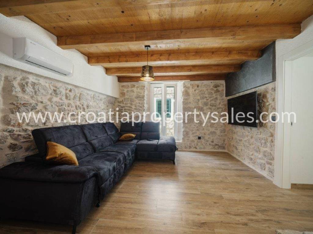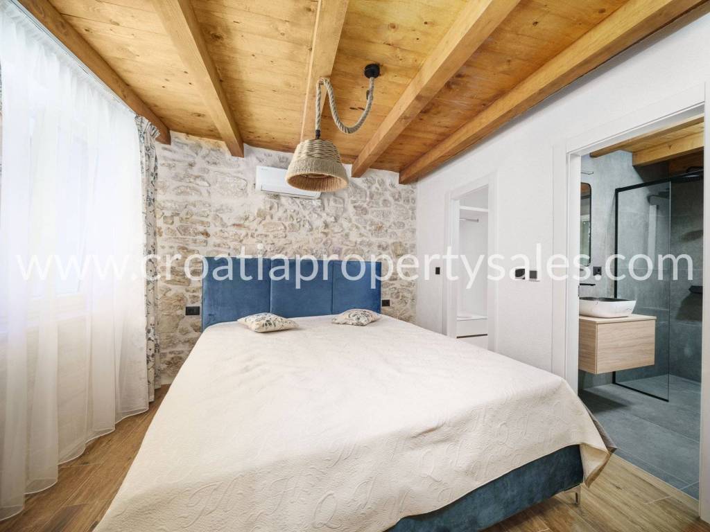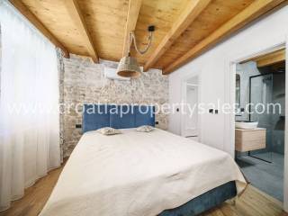 Renovirana kamena kuća na malom otočiću povezanog mostom s kopnom, kompletno namještena i odmah useljiva.