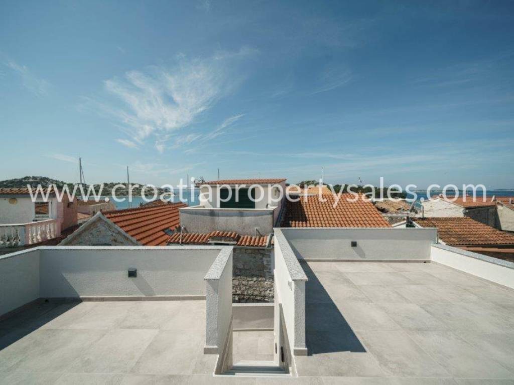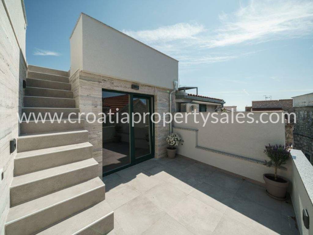 Nekretnina se sastoji od 3 etaže povezane unutarnjim stepenicama i terasama na dvije etaže. Prizemlje se sastoji od kuhinje s blagovaonicom i sobe s vlastitim walk-in ormarom i kupaonicom.