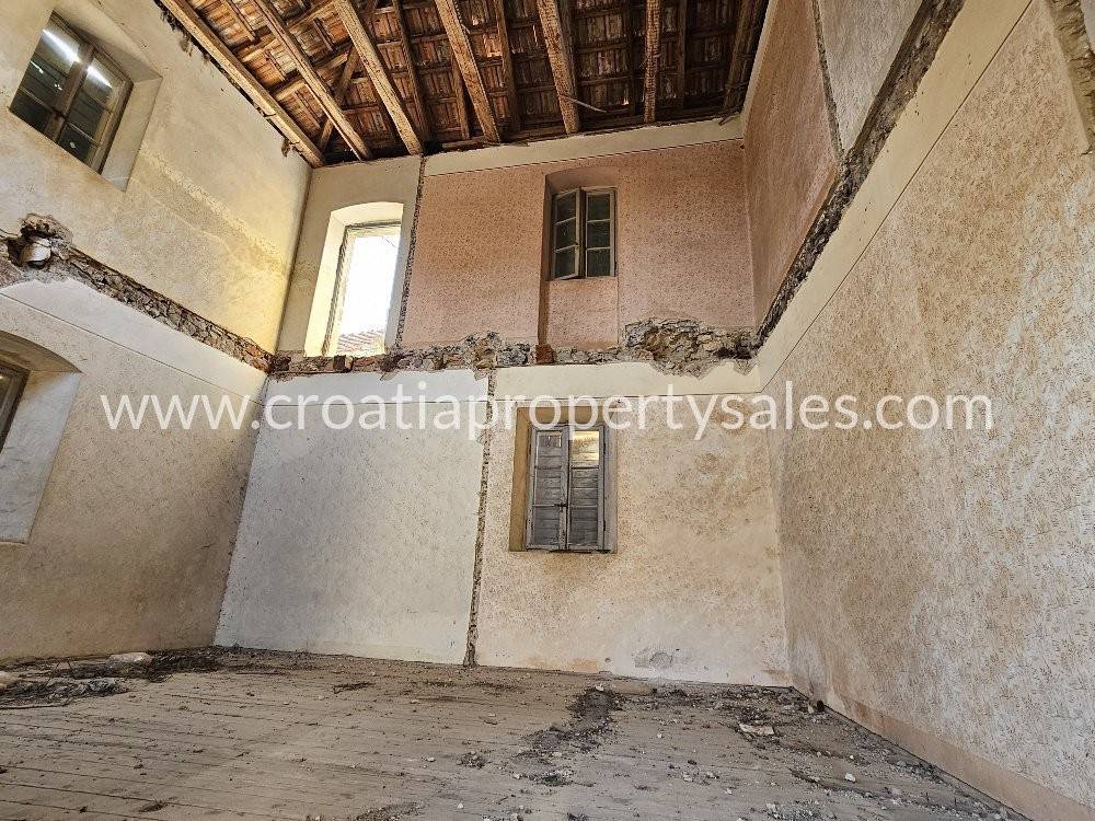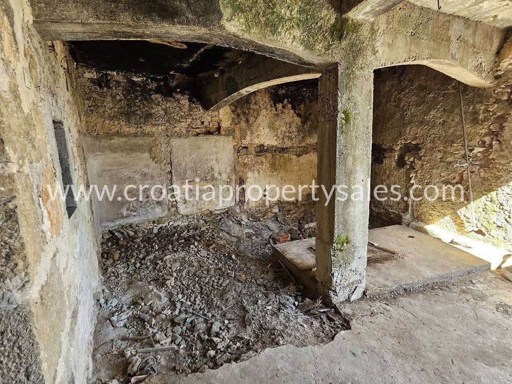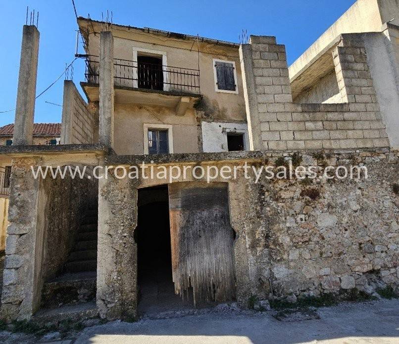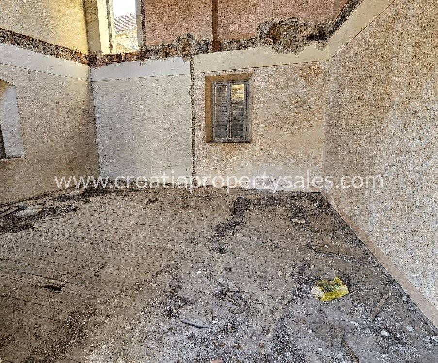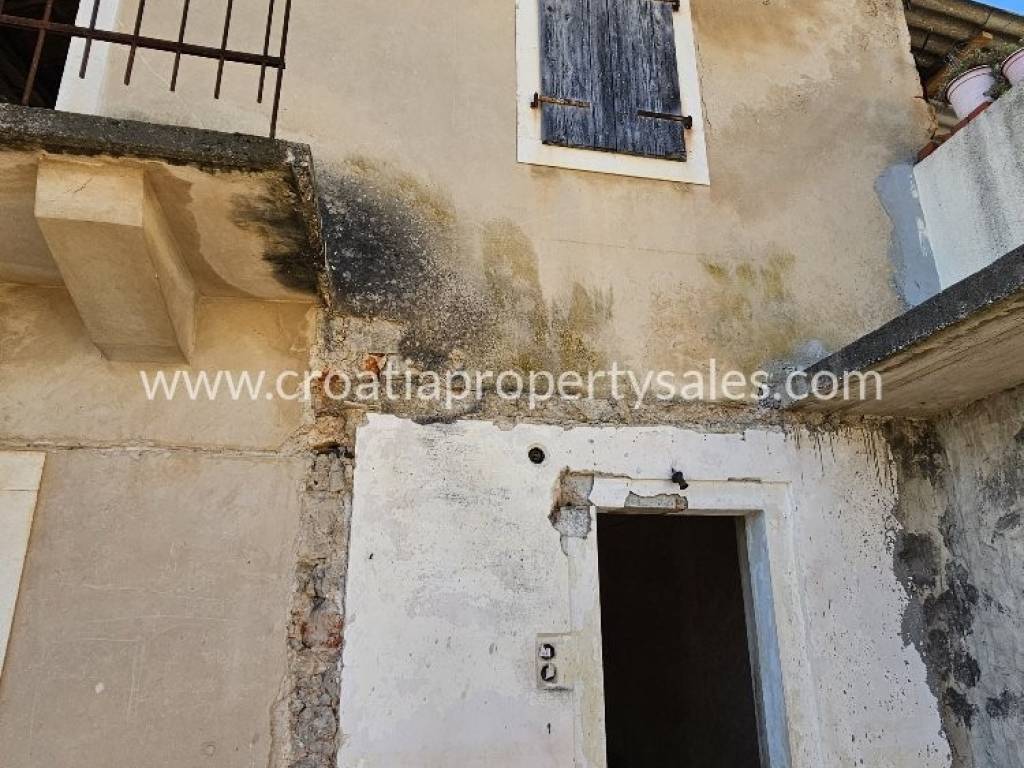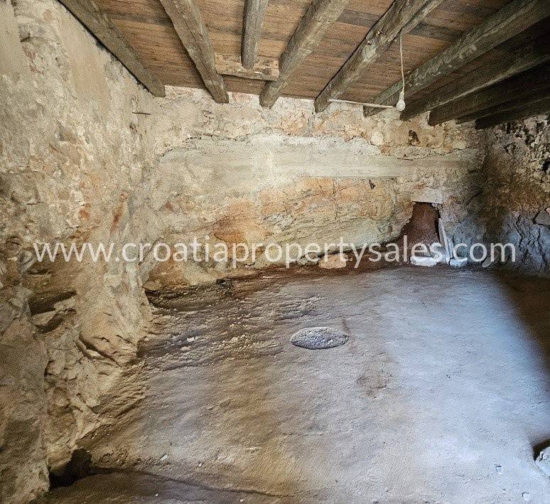 Stara dalmatinska kuća za renovaciju smještena u mirnom dalmatinskom mjestu. Ova zanimljiva nekretnina se sastoji od dvije odvojene kuće koje su spojene mostom. Veća kuća ima tri kata po 43m2, vrata na trećem katu vode na mostić kojim se dolazi do male kuće koja ima dva kata po 20m2. U prizemlju velike kuće se nalazi veliki prostor u kojem je bila konoba, dio zida je u živom kamenu što prostoru daje poseban šarm. Kuća ima svu potrebnu infrastrukturu.