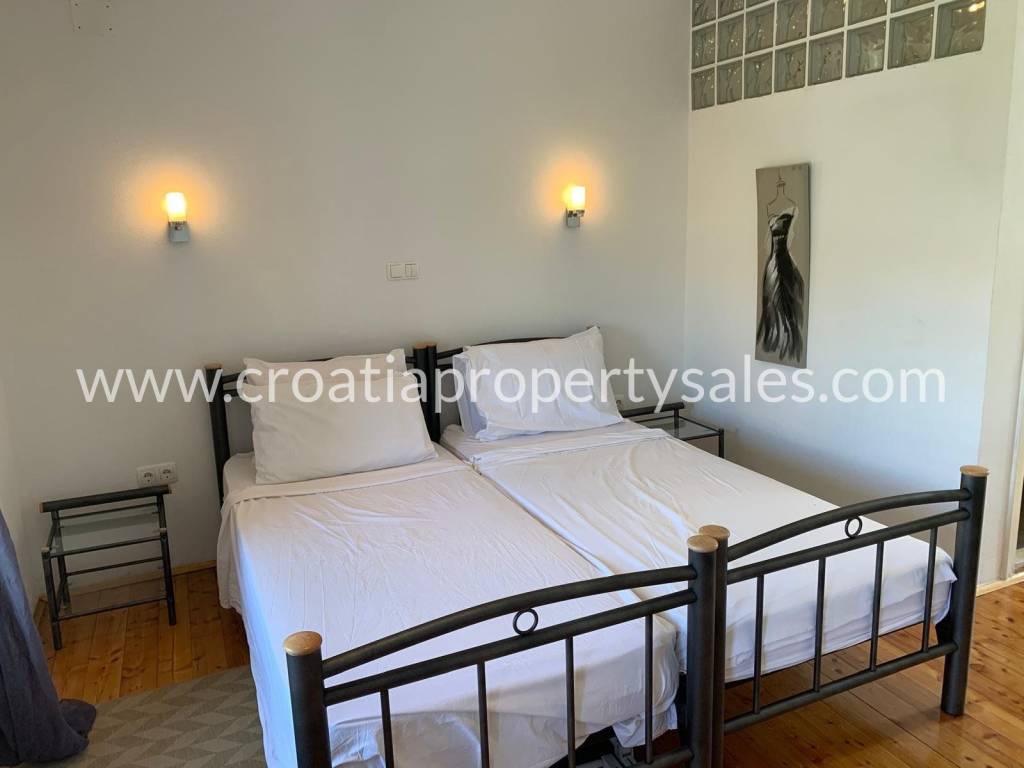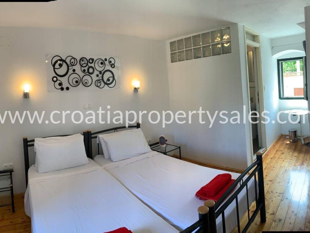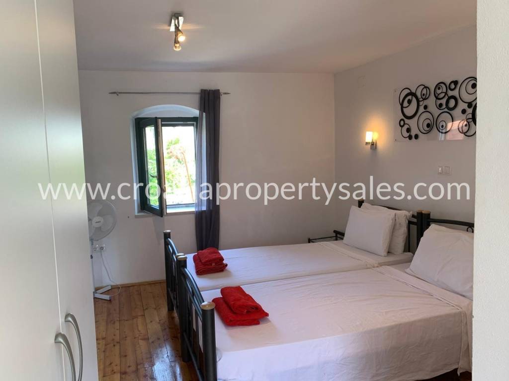 Kamena kuća na tri etaže u centru ukupne površine 72m2. U prizemlju se nalaze kuhinja s blagovaonicom, unutrašnjim stepenicama se ide na prvu i drugu etažu gdje se nalaze spavaće sobe s kupaonicama. Ova nekretninanema vanjskog prostora i pristupa automobilom. Kuća je na mirnoj lokaciji, u blizini mora i plaža.
