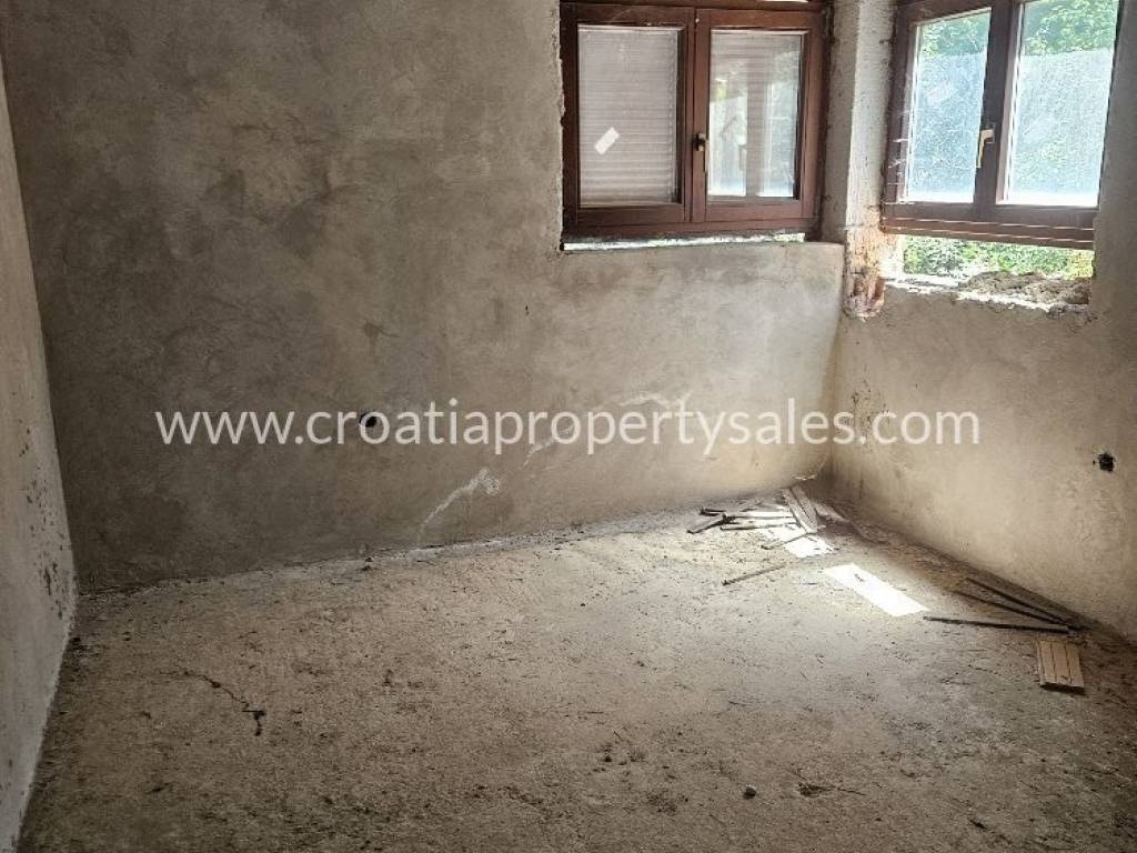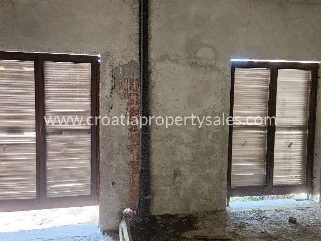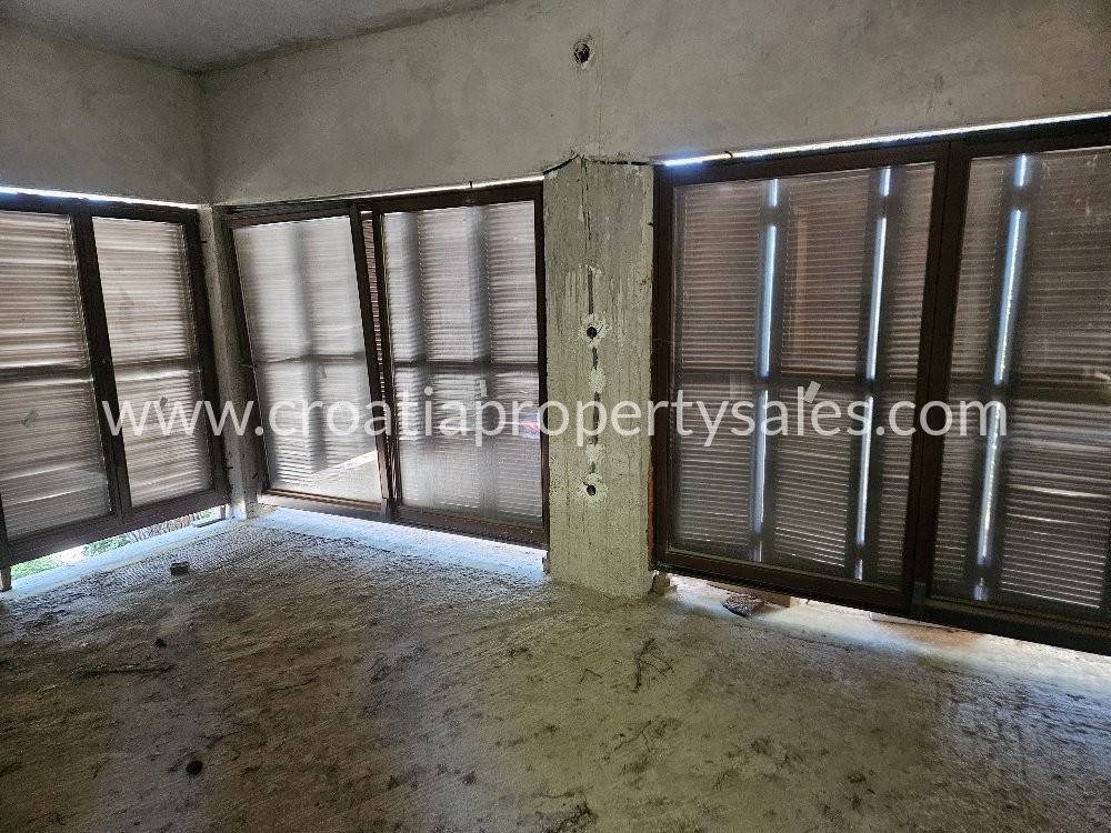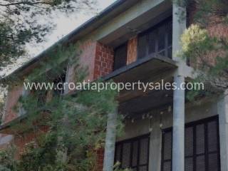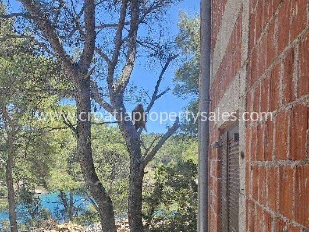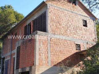 Nedovršena kuća na atraktivnoj i mirnoj lokaciji u prvom redu do mora. Kuća je do ove faze urađena vrlo kvalitetno, te jako dobro i praktično osmišljena. Postavljene instalacije za struju i vodu. Kuća ima dvije etaže ukupne površine 215 m2. U prizemlju je predviđen veliki dnevni boravak koji je osmišljen kaskadno, posjeduje instalirani dimnjak, mogućnost postavljanja peći na drva. Također u prizemlju se još nalazi kuhinja i 3 velike sobe s pripadajućim kupaonicama. Prizemlje je veliko 115 m2 i ima visoke stropove što pridonosi dojmu otvorenog prostora. Vanjske stepenice vode do druge etaže površine 105 m2 gdje se nalaze tri apartmana. Cijela parcela je okružena suhozidom i s obzirom na veličinu okućnice budući vlasnik ima brojne mogućnosti kod uređenja vanjskog prostora i vrta.