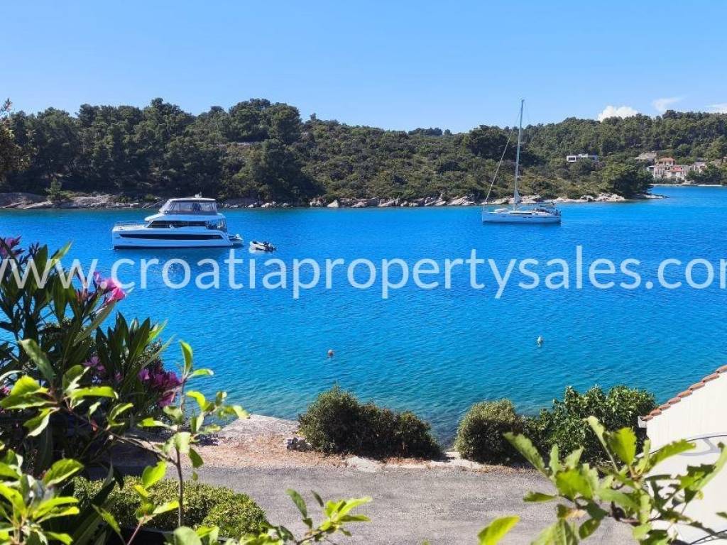 Kuća se nalazi prvi red do mora u mirnom i sigurnom kvartu u unutrašnjosti uvale, odvojenom od centra mjesta. Oko kuće ima mnogo zelenih površina i vrtova što ju čini vrlo ugodnim mjestom za život, pogotovo ljeti.