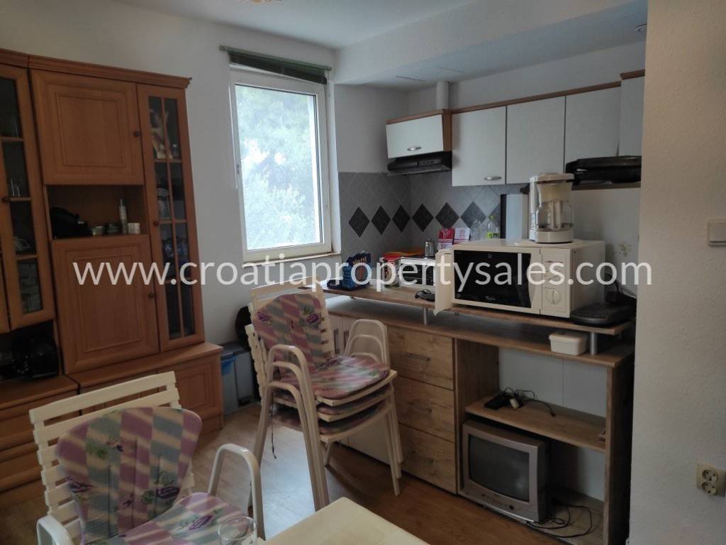 Nedovršena jednokatna samostojeća kuća s pogledom na more, u uvali samo nekoliko metara od mora i plaža s okućnicom.