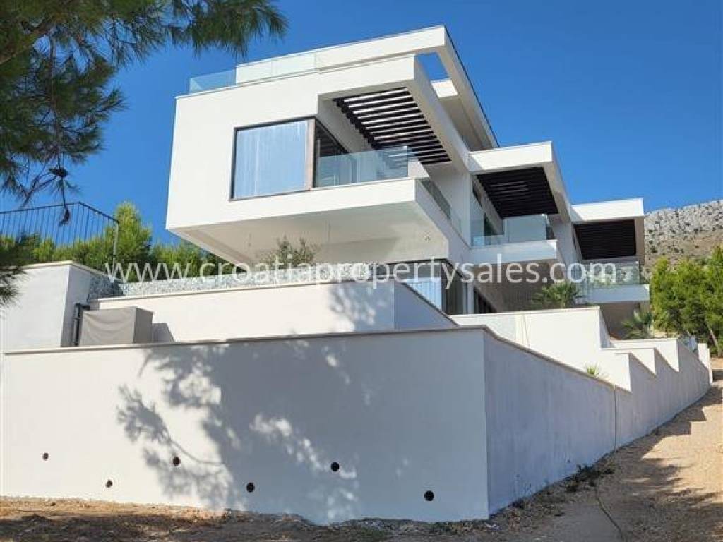 Luksuzna vila površine 500 m2 smještena na zemljištu površine 575 m2 smještena u slikovitom malom mjestu omiške rivijere na uzvisini s prekrasnim panoramskim pogledom.
