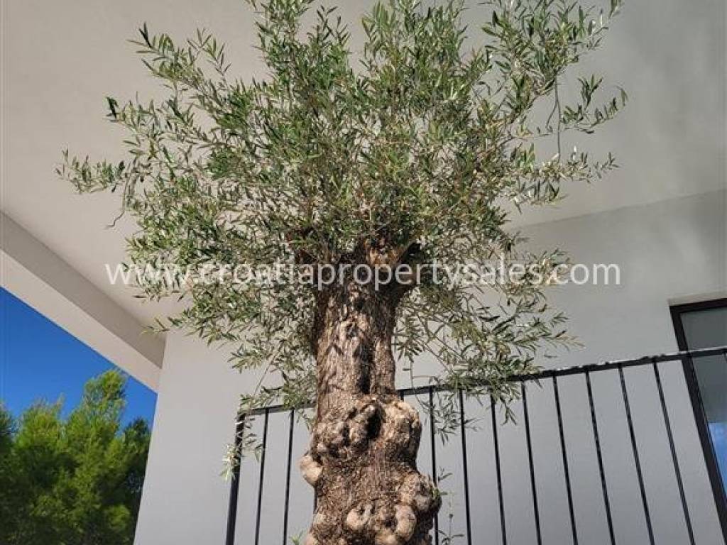Okoliš vile je zasađen autohtonim dalmatinskim bilje te stablima maslina i palmi. Vanjski natkriveni parking za 3 automobila se nalazi sa sjeverne strane vile.
