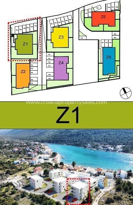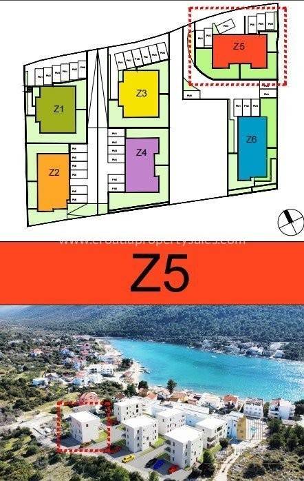 Apartmani su uglavnom dvosobni, a u prodaji je i nekoliko trosobnih i četverosobnih apartmana. Svi apartmani imaju terasu ili lođu, dok apartmani u prizemlju imaju i vrt. Penthouse ima pogled na more, dok će ostali imati djelomičan pogled ili ga uopće neće imati.