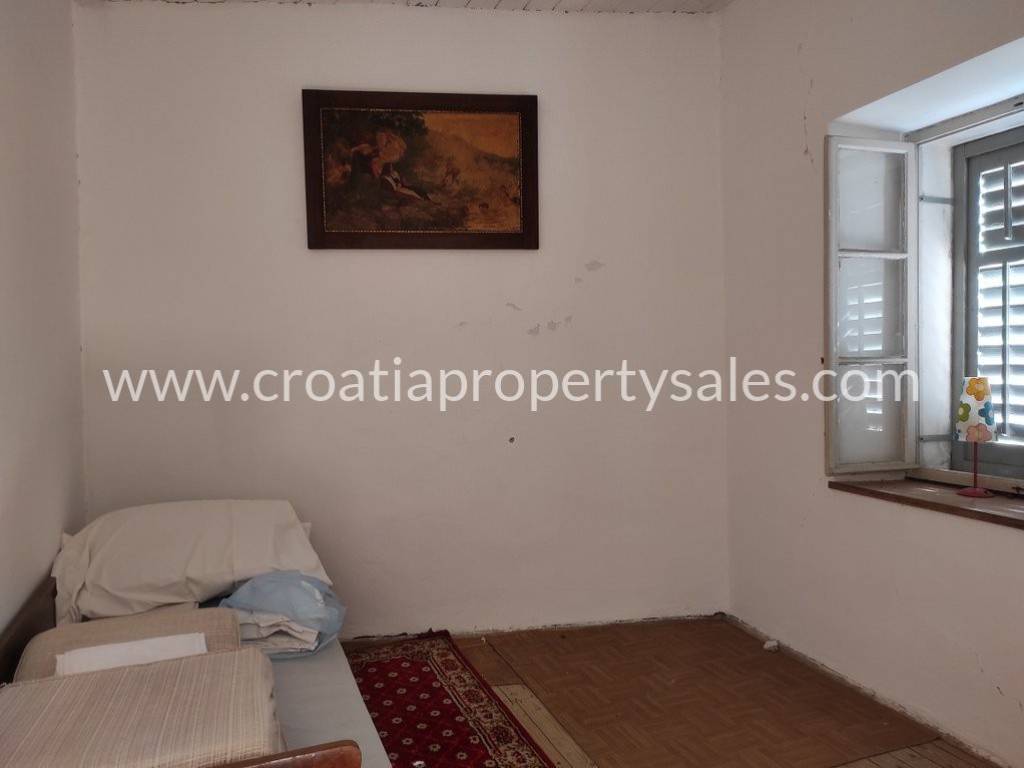 U prizemlju se nalazi stara konoba, kupaonica, a vanjske stepenice vode na gornji kat u spavaće sobe.