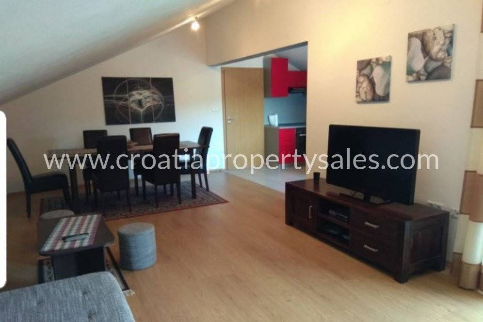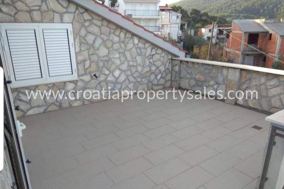 Na katu su također 3 apartmana koja imaju izlaz na zajedničku terasu, a u potkrovlju je veliki stan koji se proteže po cijelom tlocrtu kuće.