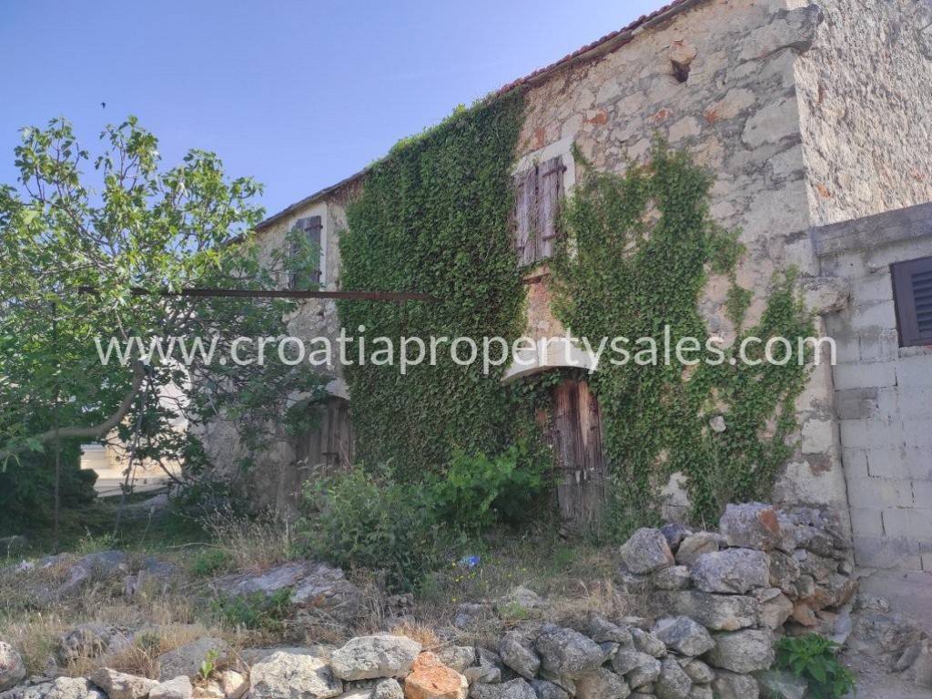 Dvojna, autentična stara kamena kuća u selu, sa vrtom.