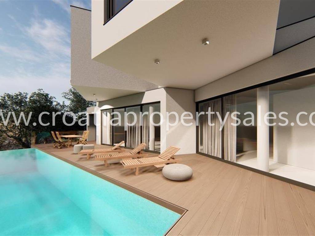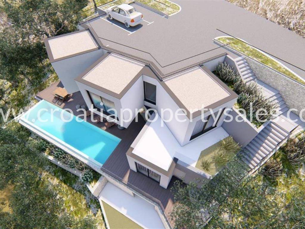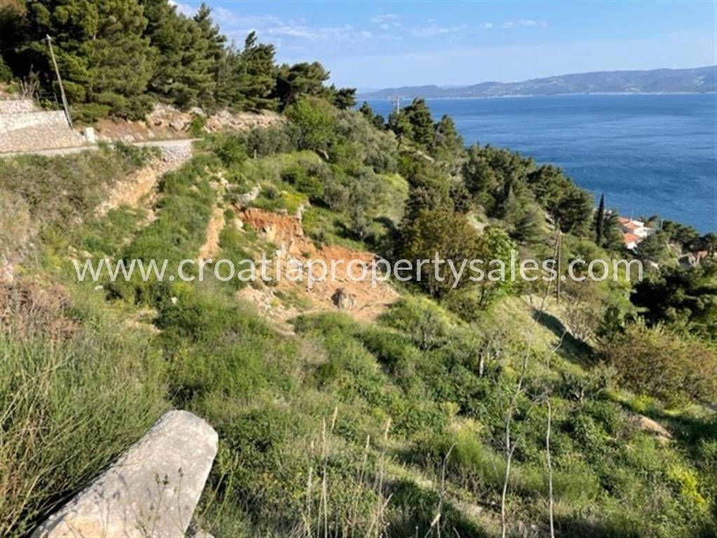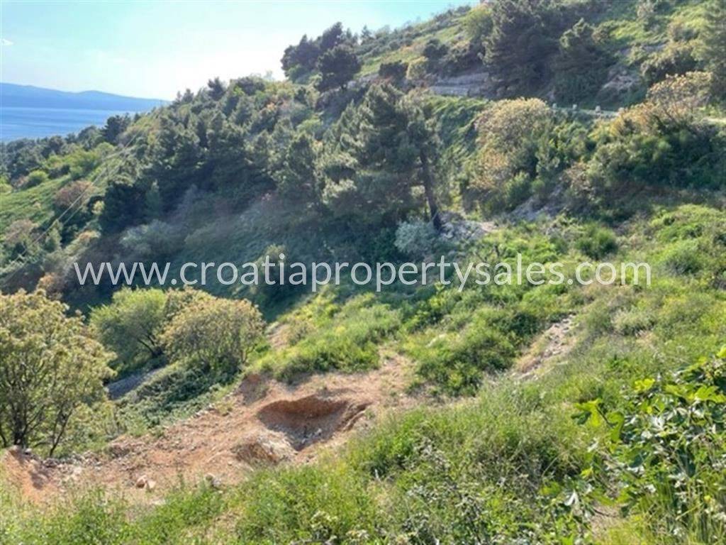 Građevinsko zemljište površine 411 m2, u malom mjestu na Omiškoj rivijeri. Zemljište se nalazi na brežuljku s kojeg se pruža panoramski pogled na more, brda i otoke, a do njega vodi lokalni pristupni put. U blizini se nalaze instalacije vode i struje. Na zemljištu je predviđena gradnja moderne vile s bazenom za koju je projekt izradio renomirani splitski arhitekt za koju je u procesu izdavanje građevinske dozvole. S obzirom da je zemljište zadnje u građevinskoj zoni mir i intima su zagarantirani.