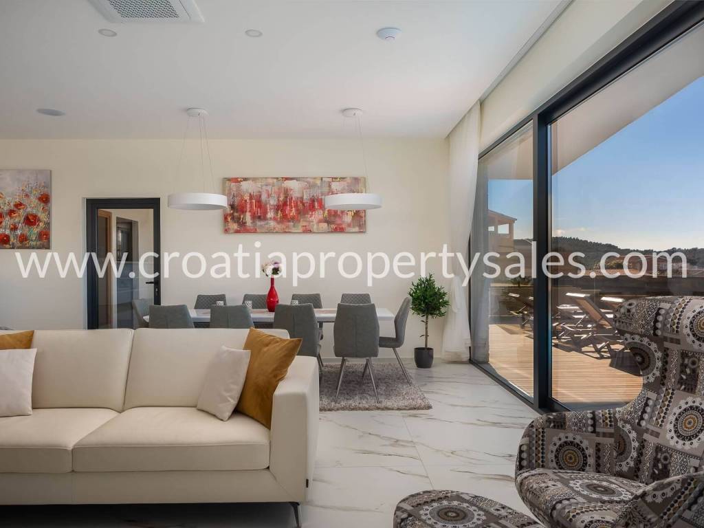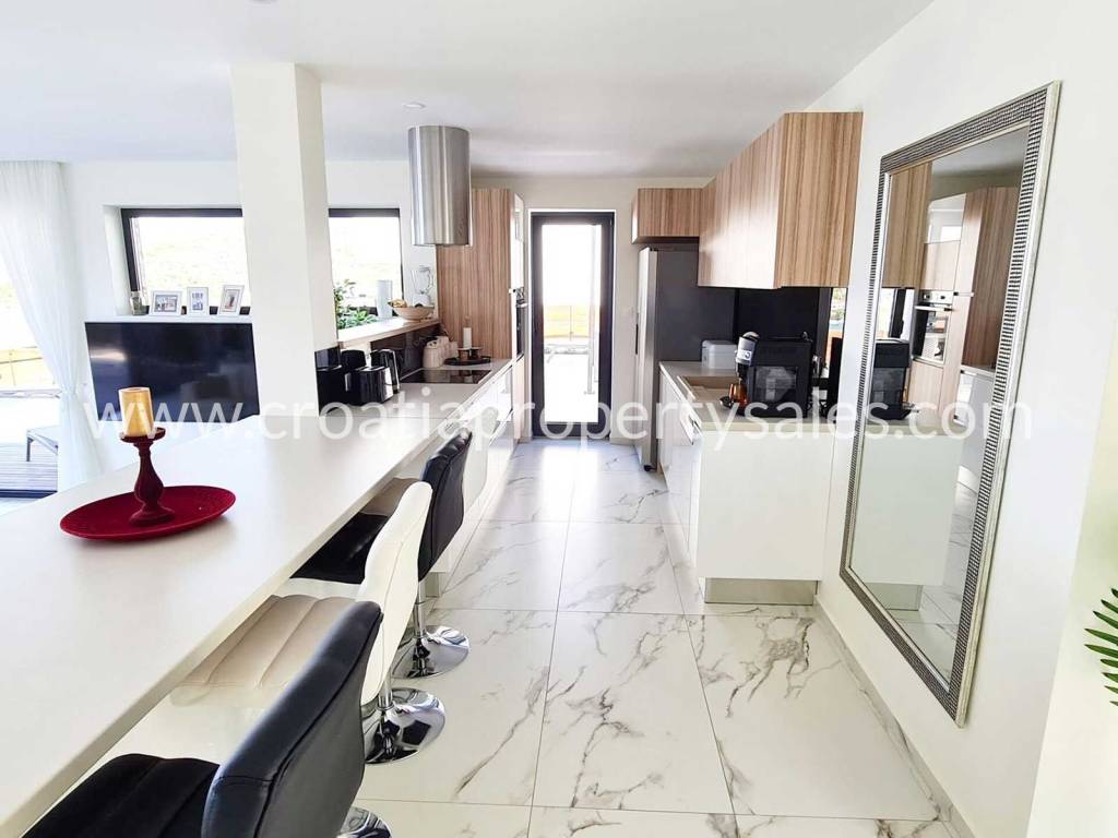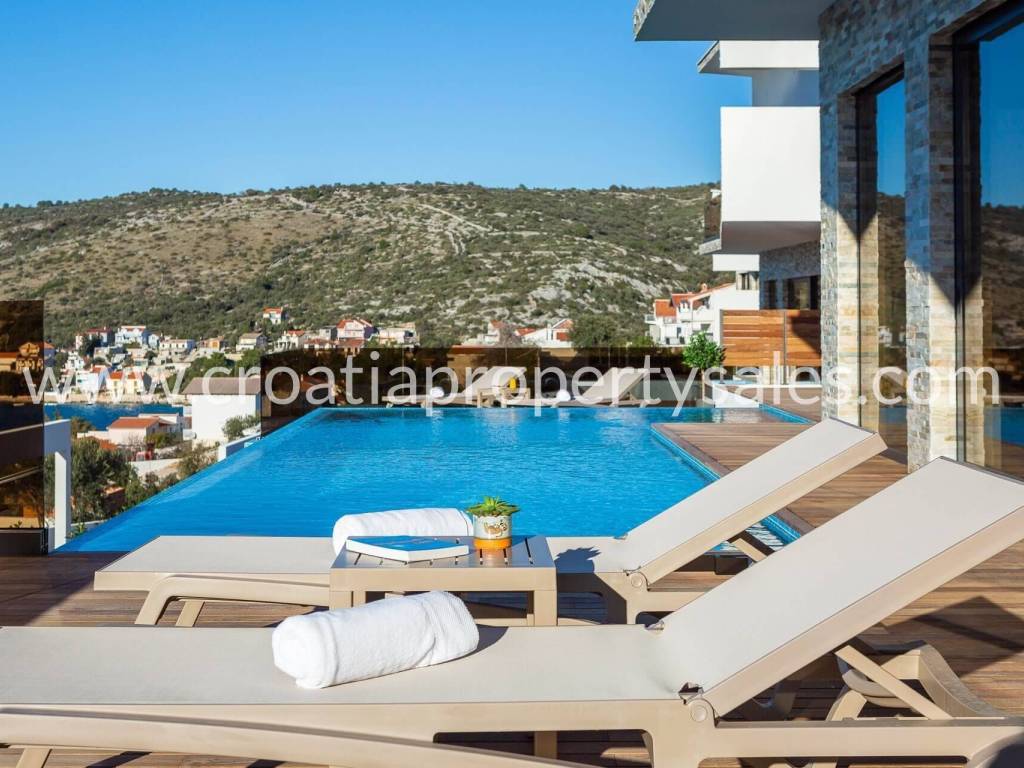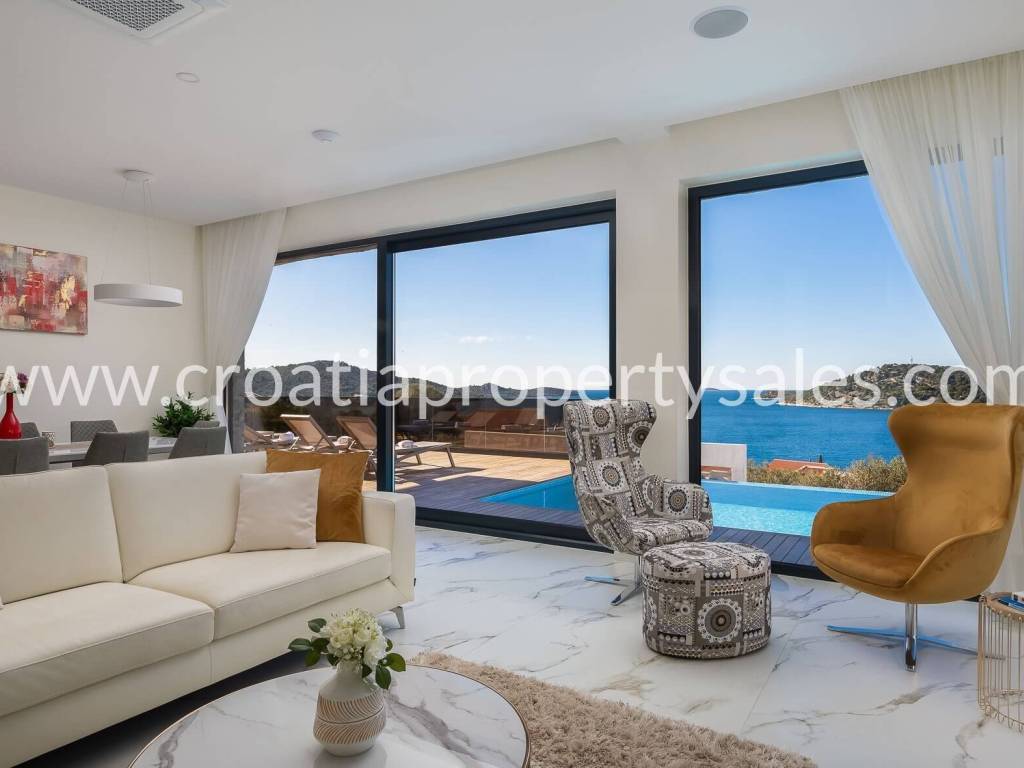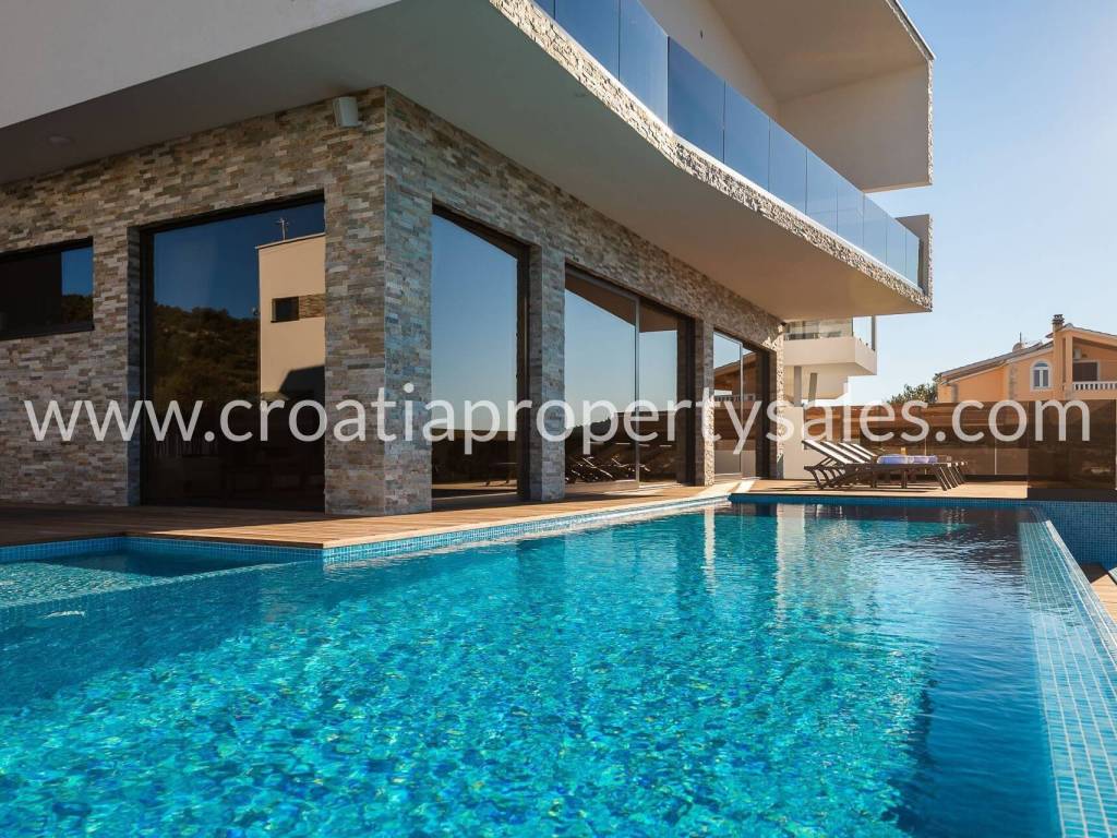 Okućnica je kultivirana mediteranskim biljem. Iz vile se pruža predivan pogled na more u kojem možete uživati iz preljevnog bazena.
