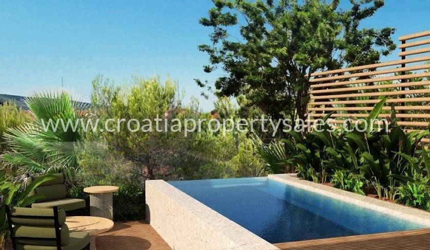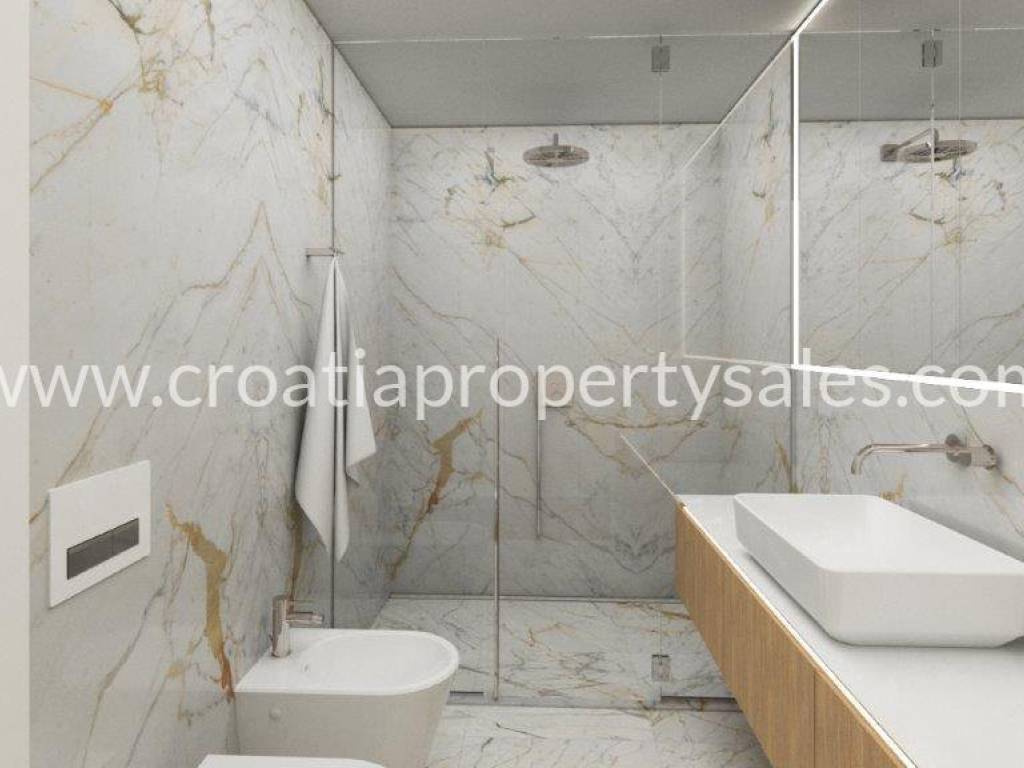 Vila se sastoji od 4 etaže, a na svakoj etaži se nalaze po 3 apartmana, sličnih tlocrta, površine od 79,07 m2 do 95,47 m2, a u prizemlju će biti zajednički bazen.