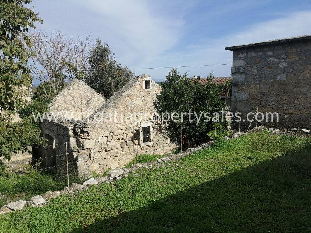 Prekrasan kompleks stare kamene kuće i ruševina sa dvorištem i vrtom u centru sela.