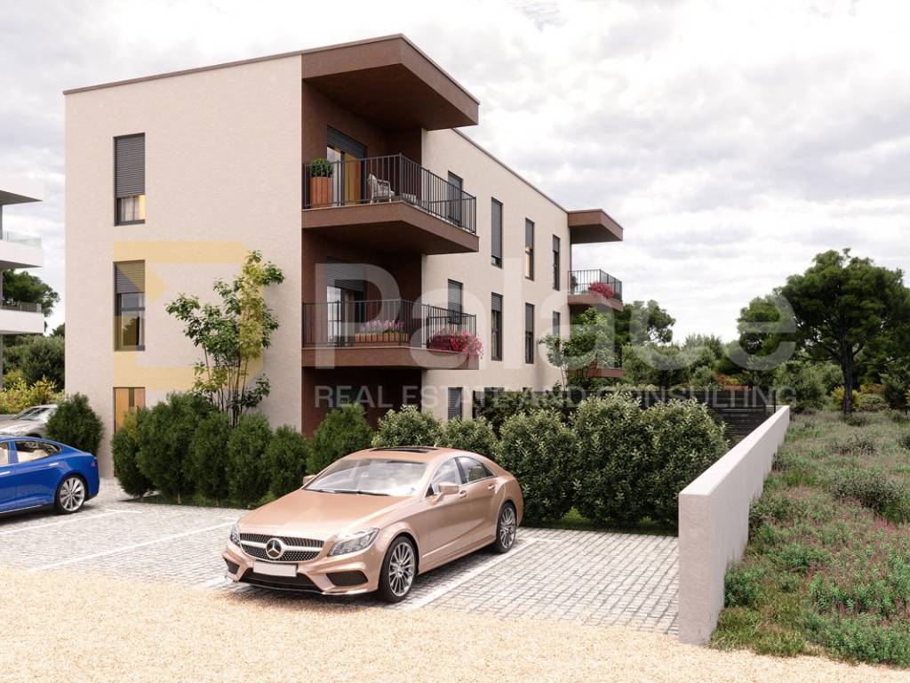 Tlocrt je jednostavan i prostor jako dobro iskorišten. Stambene površine 69,73 m2 te se po ulasku u stan nalazi ulazni prostor površine 7,93 m2 gdje je ostavljen prostor za veliki ugradbeni ormar te vodi do kupaonice površine 5,37 m2, te dvije spavaće sobe površine 12,01 m2 i 10,89 m2 i prostora kuhinje, dnevnog boravka i blagovaonice površine 33,76 m2. Kuhinja može biti odvojena vratima ukoliko ima potrebe za tim. Iz dnevnog boravka se izlazi na natkrivenu terasu površine 10 m2 ( izračun po koeficijentu 5 m2 ). Stanu pripadaju i dva nenatkrivena parkirna mjesta ( izračun po koeficijentu 5m2 ).