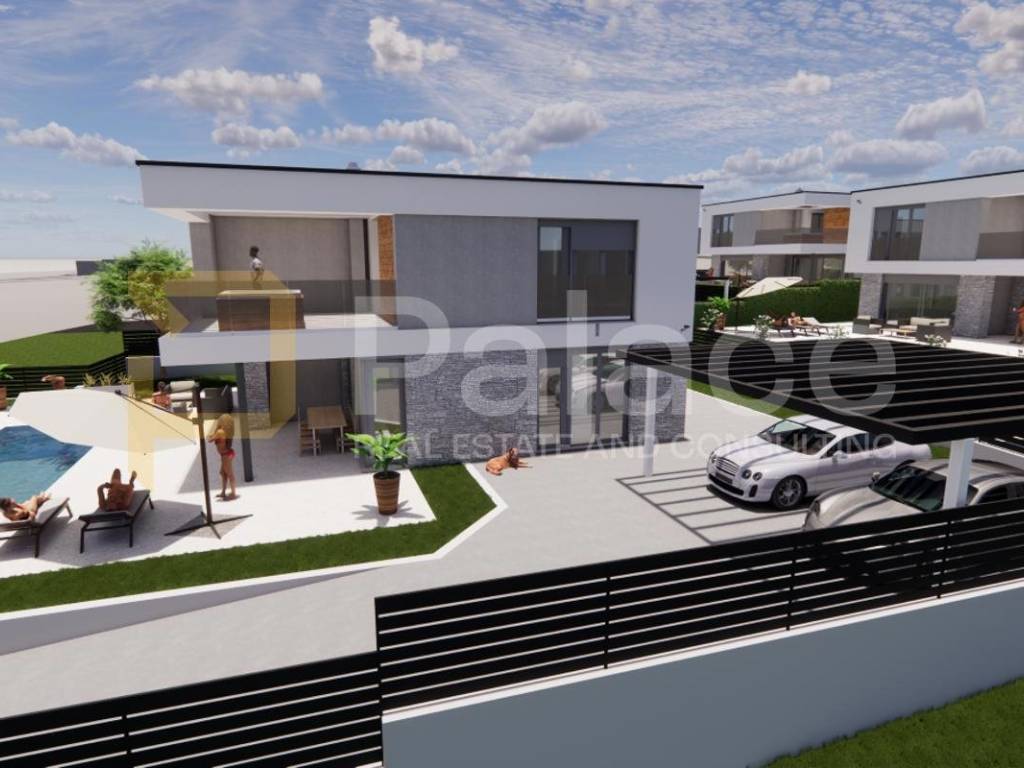Predstavljamo izvanrednu priliku za kupnju moderne vile u izgradnji, smještene u mirnom i atraktivnom dijelu u blizini Nove Vasi. Ova luksuzna nekretnina visokog standarda prostire se na parceli od 635 m i osmišljena je kako bi pružila maksimalnu udobnost, privatnost i suvremeni način života.