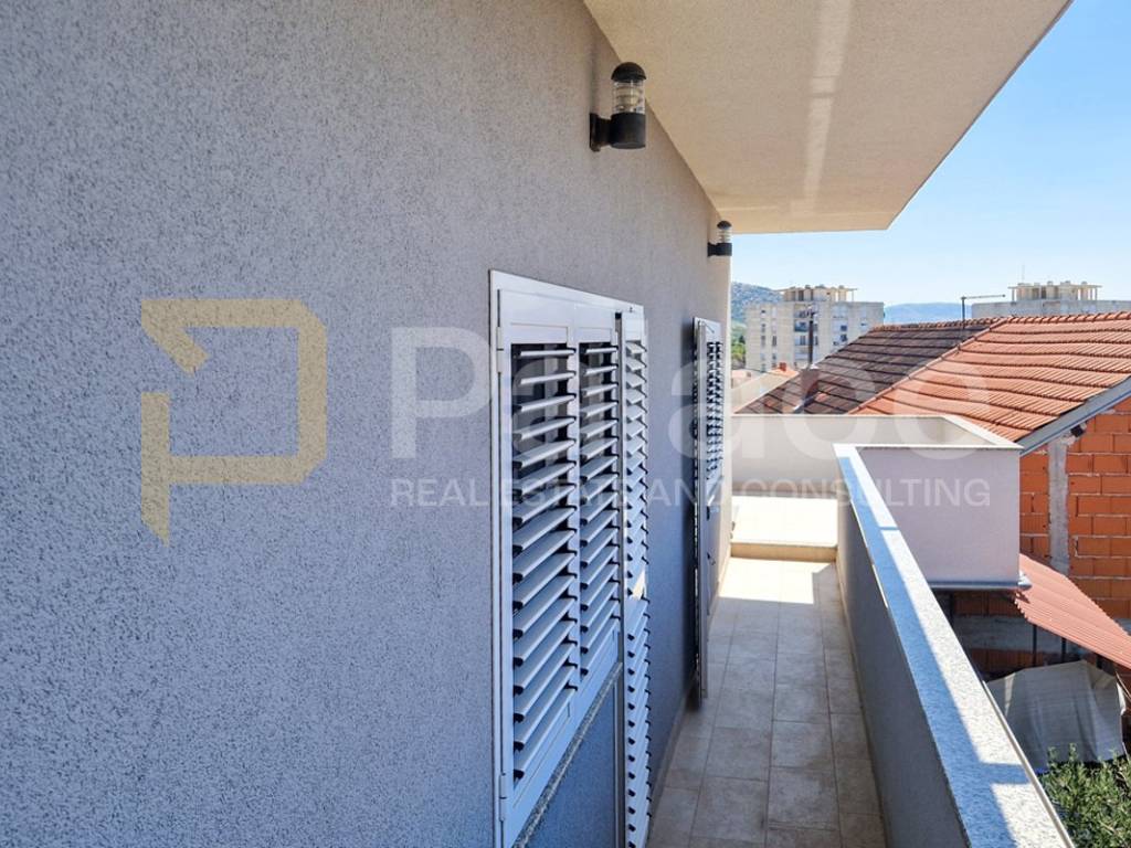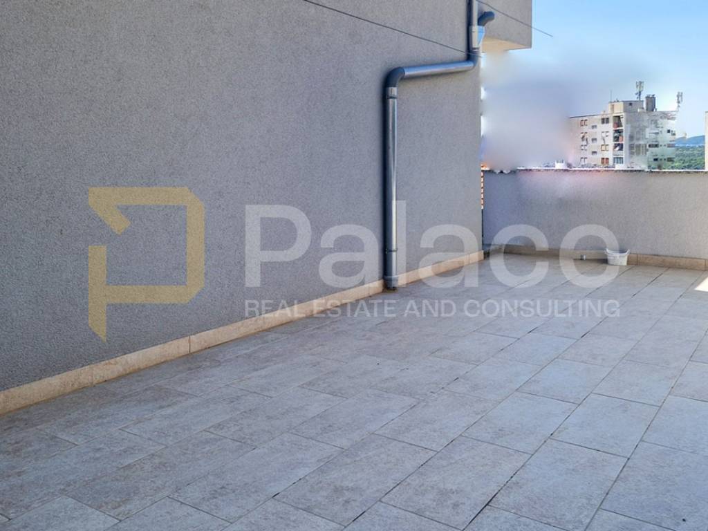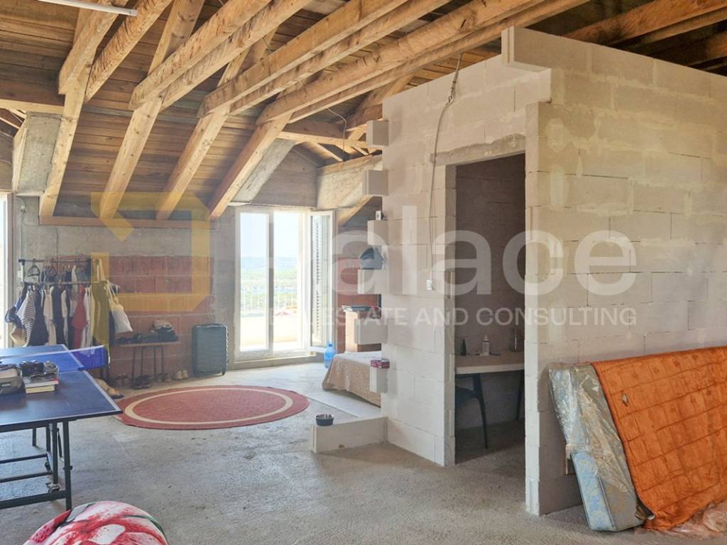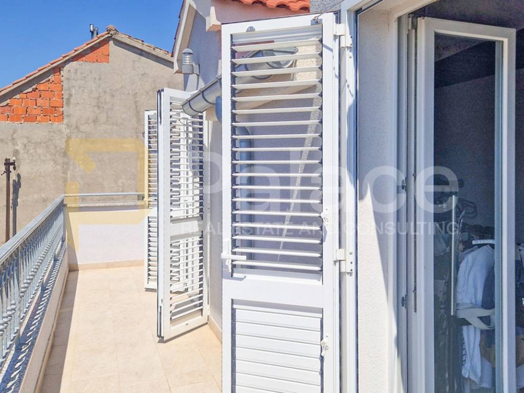 Na katu iznad je ucrtana krovna terasa površine 77,9 m2 iz koje je izvedeno roh bau potkrovlje s kupaonicom, balkonom i prekrasnim pogledom na cijeli šibenski arhipelag.