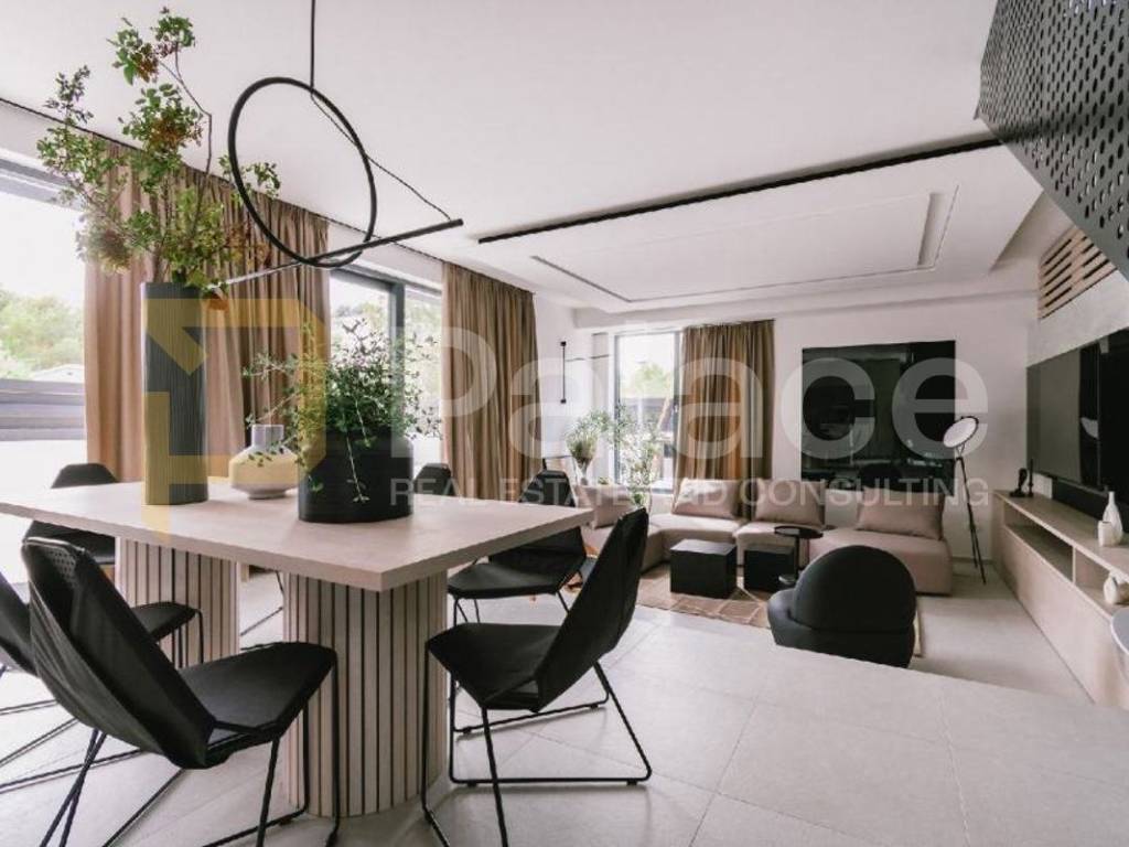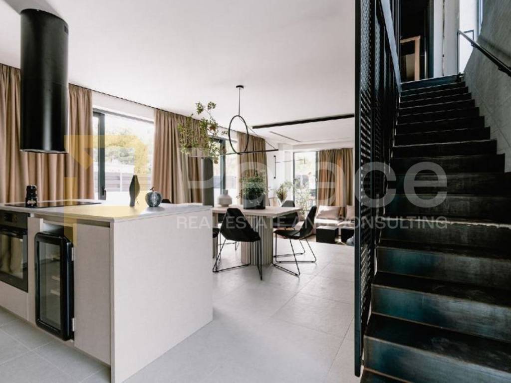 Osim što je kuća izrazito skladno uređena i sazidana modernim materijalima, prevladavaju zemljani tonovi te crna i bijela boja u unutrašnjem uređenju. U svaki detalj ove kuće uložena je posebna briga, a posebno valja istaknuti bazen i jacuzzi koji se nalaze u prizemlju.