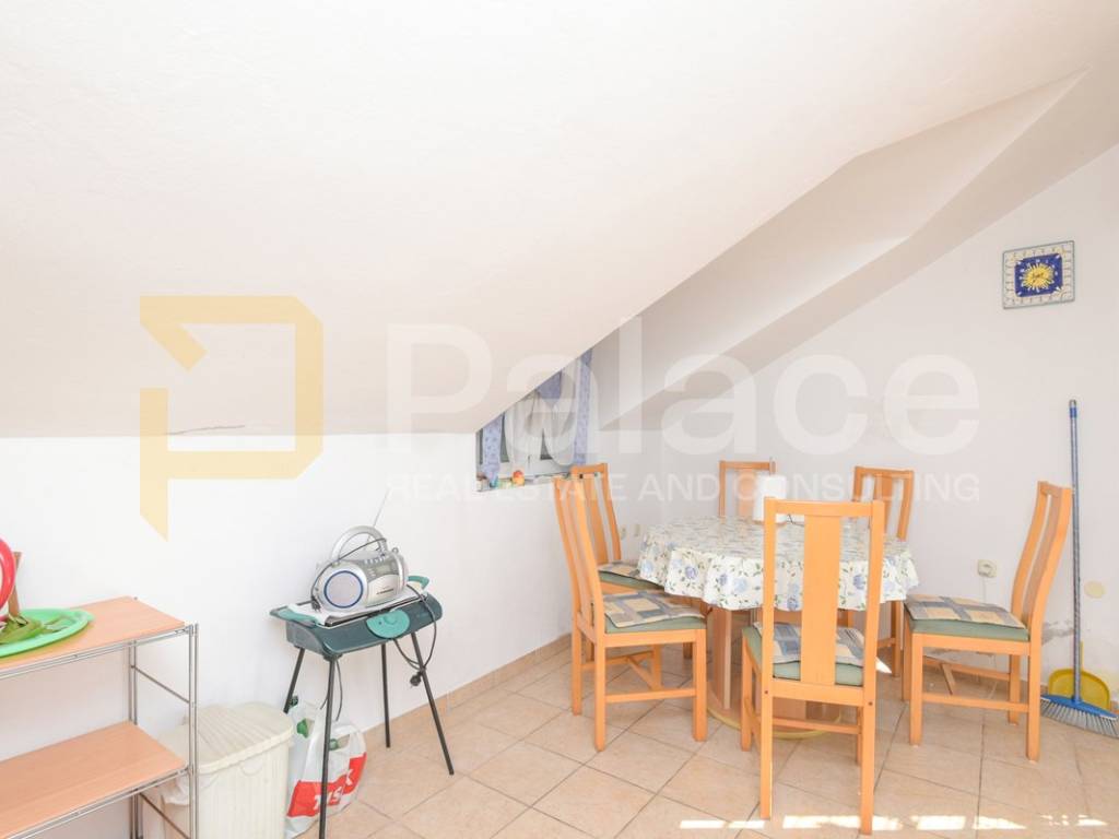 Na zadnjoj etaži je prostor kuhinje s blagovaonicom i terasom s najljepšim pogledom u Vodicama. Vidi se cijeli grad, more kao na dlanu kao i arhipelag otočja ispred grada.