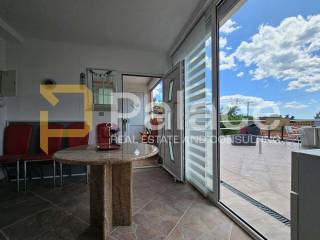 Stan raspolaže s više prostorija uključujući dnevni boravak, još jedan dnevni prostor s krevetima i kuhinjom, spavaću sobu, dvije kupaonice, prostrani hodnik i dodatni prostor koji se može koristiti kao garderoba, radna soba ili ostava. Poseban naglasak je na velikim terasama koje omogućuju boravak na otvorenom tijekom većeg dijela godine. U naravi je riječ o dvije stambene jedinice, svaka sa zasebnim ulazom. Garsonijera površine 35m i stan površine 70m.