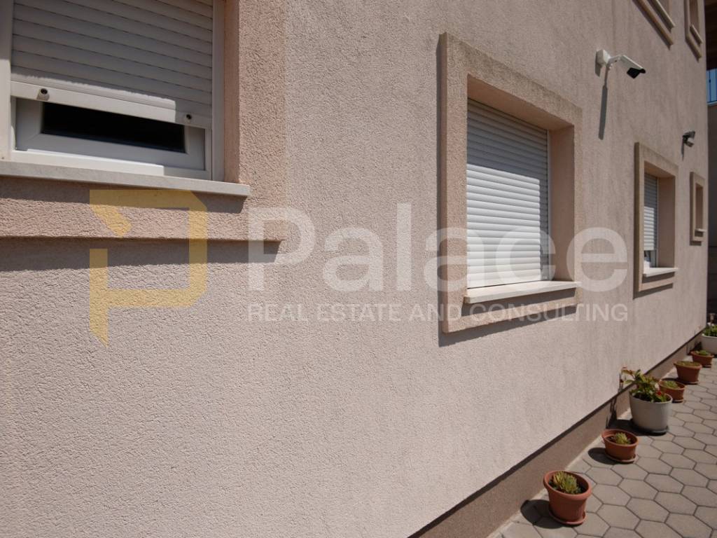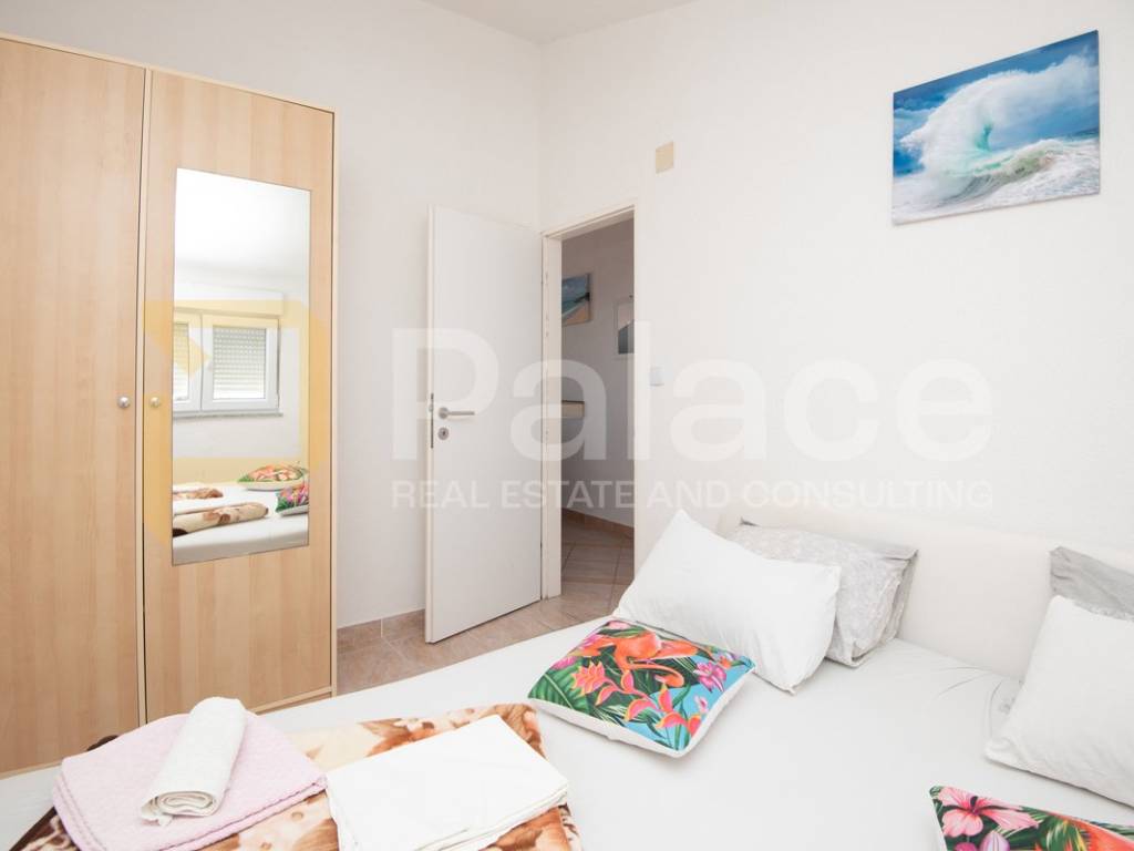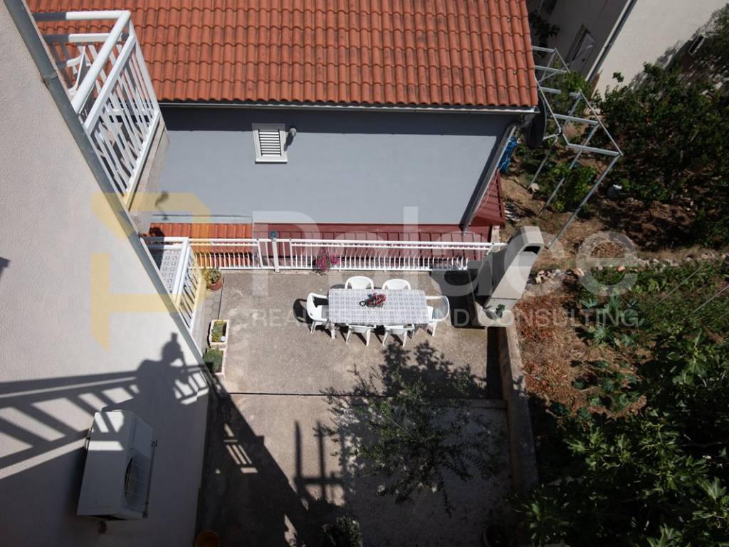 Nalazi se samo 250 metara od mora, te većina apartmana ima predivan pogled na more. U kući neto površine 253 m2 se nalazi 6 potpuno opremljenih apartmana, svaki stambene površine 35,5 m2, te svaki apartman ima zasebnu spavaću sobu, kuhinju, blagovaonicu i dnevni boravak u jednoj cjelini, kupaonicu te terasu od 5 m2. Također ima i jedan dodatni stan u suterenu.
