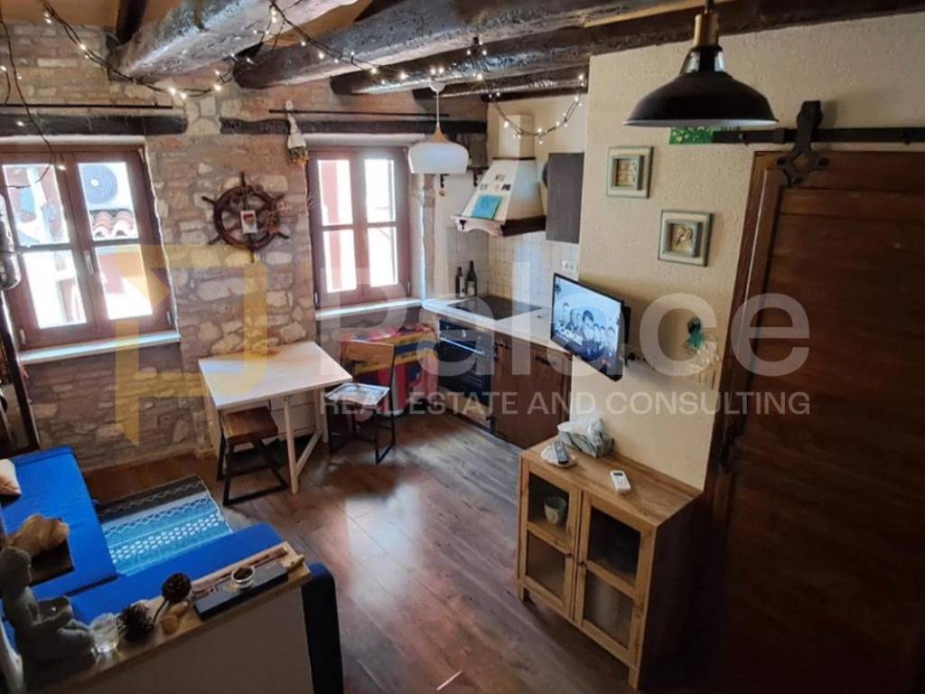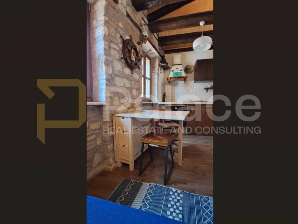 Ova nekretnina od 25 m, smještena na trećem (posljednjem) katu tradicionalne kamene zgrade, odiše toplinom i autentičnošću. Stan je pažljivo renoviran, s naglaskom na očuvanju izvornih detalja poput izloženih drvenih greda, te nudi ugodan galerijski prostor za opuštanje. Poseban naglasak daje unikatni stol izrađen od istarskog kamena simbol lokalne tradicije i obrta.
