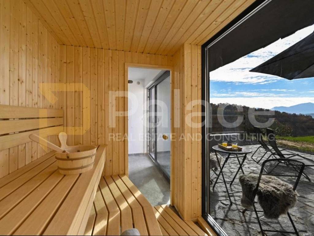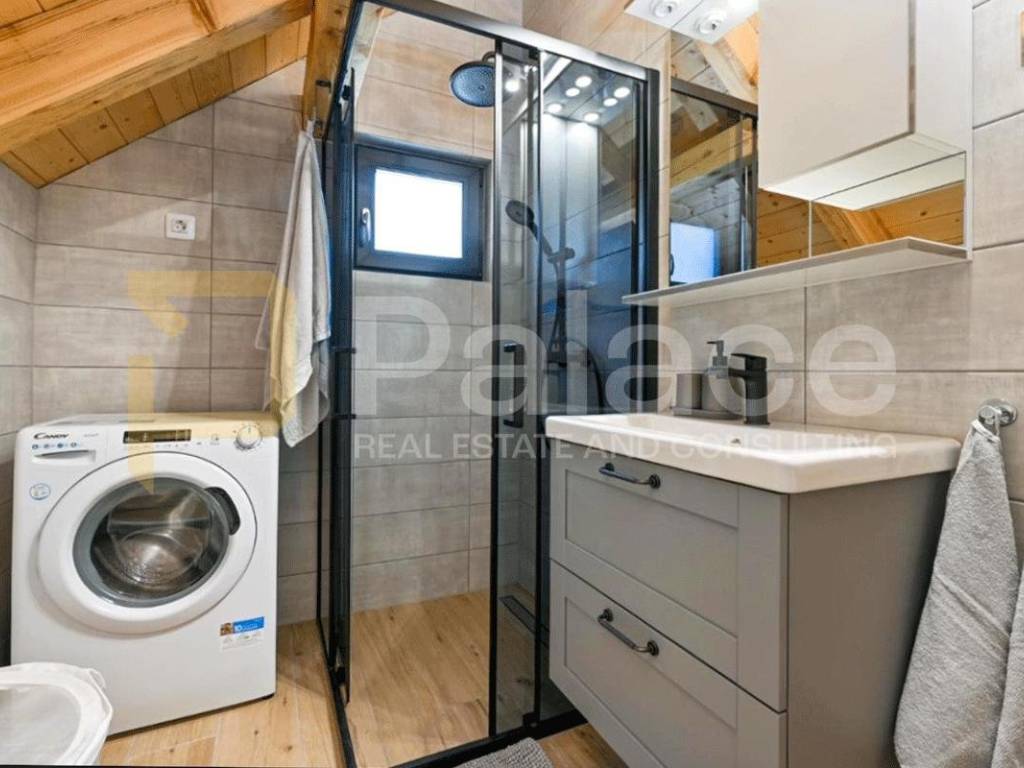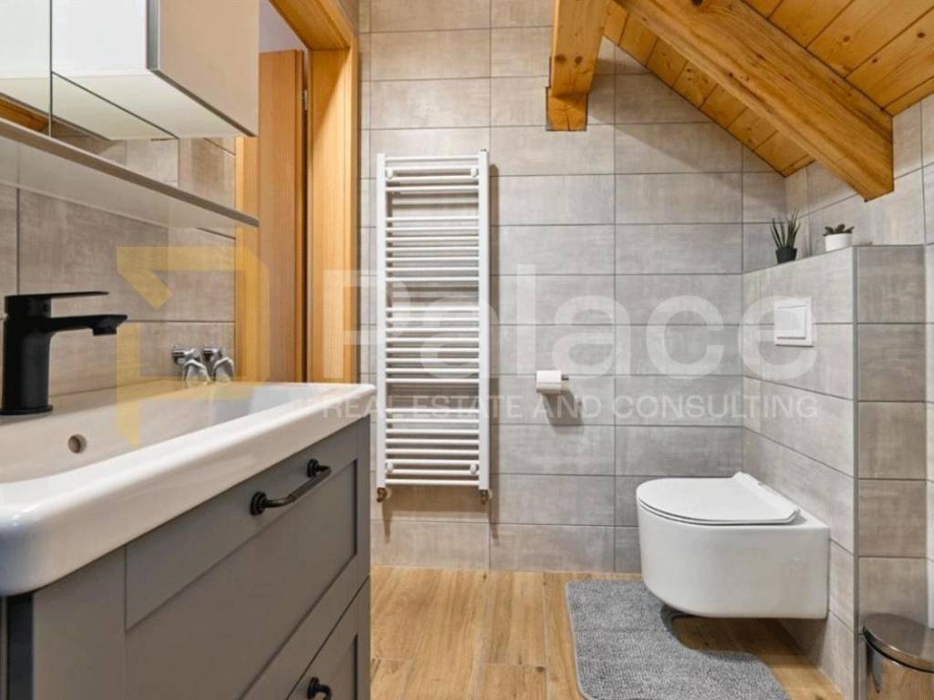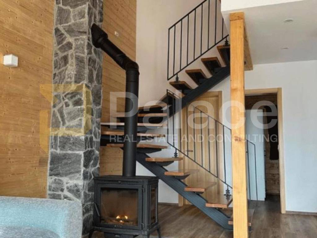 U suterenu se nalaze sauna i jacuzzi te prostrana terasa s pogledom na planine. Prizemlje se sastoji od dnevne sobe, kuhinje s blagovaonicom, kupaonice te spavaće sobe. U potkrovlju su još jedna spavaća soba i kupaonica.