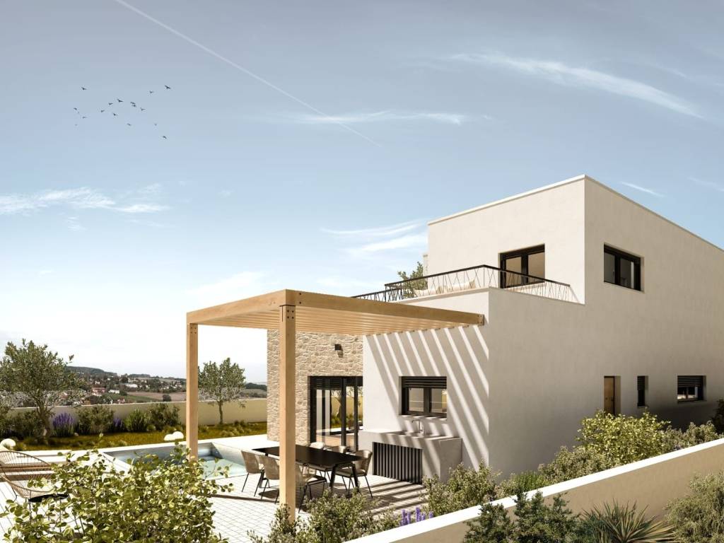 Na prodaju je luksuzna vila s bazenom na dvije etaže, na mirnoj lokaciji u Vodicama. Vodice već godinama slove kao turističko središte šibensko - kninske županije, a zbog svoje urbane razvijenosti i van turističke sezone, jedno je od najtraženijih područja, kako za življenje tako i za turizam. Ova vila smještena je u mirnom dijelu Vodica, u izgrađenom građevinskom području.