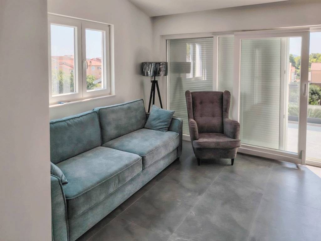 Stan je potpuno opremljen modernim namještajem i kućanskim aparatima, uključujući klimatizaciju,podno grijanje, internet, i parkirno mjesto.