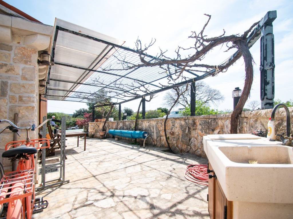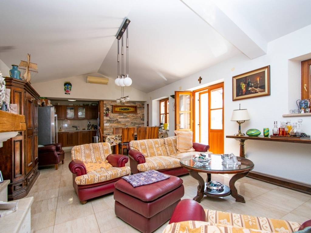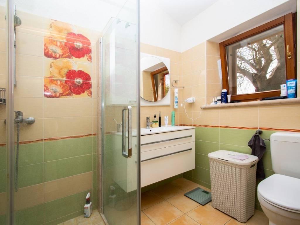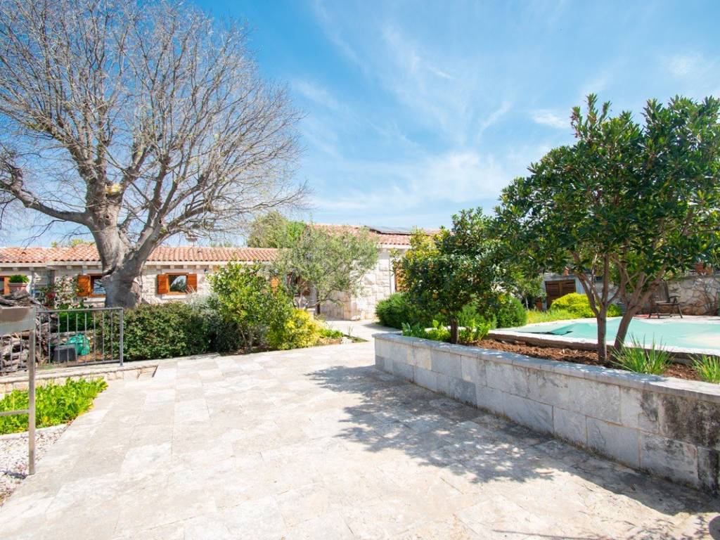U imanje vas uvodi velika okućnica sa uređenim vrtovima u čijem se centru nalazi bazen koji vodi do glavnog objekta. Glavni objekt, neto površine 164 m2 ( ne uključujući potkrovlje i vanjske terase) sastoji se od prostrane kuhinje s blagovaonicom, dnevnog boravka s kaminom, tri spavaće sobe veličine cca 14m2 i pripadajućim kupaonicama, radne prostorije i velike ostave s potkrovljem.