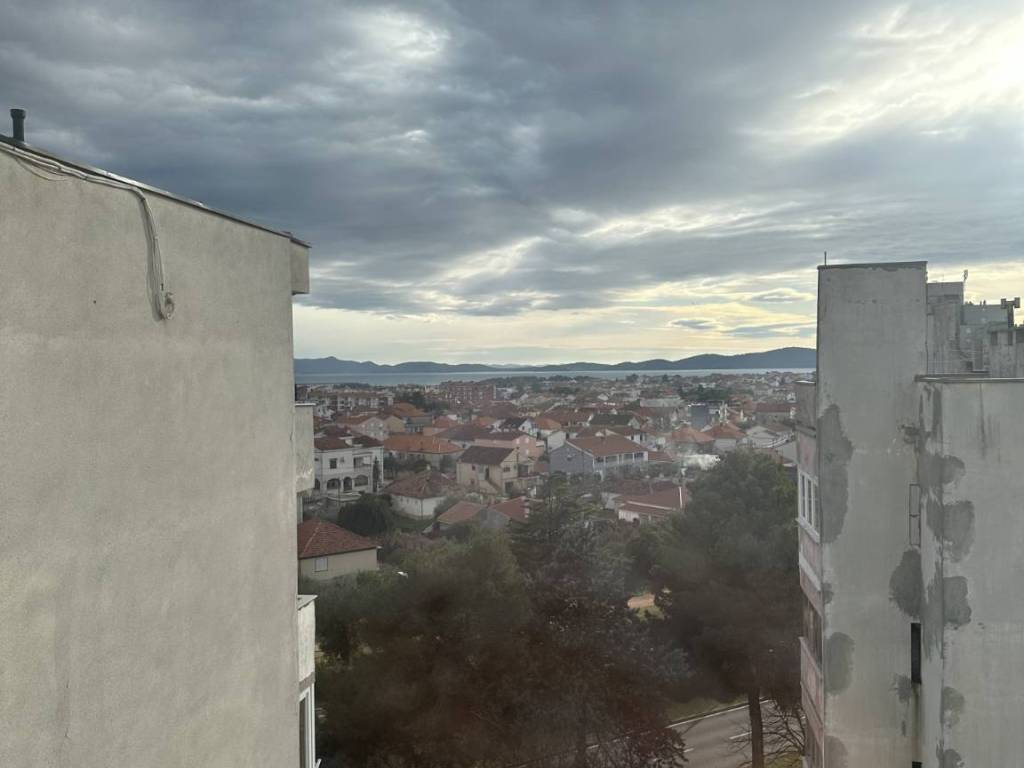 U širem centru Zadra na prodaju je stan površine 60m2, nalazi se na sedmom katu u stambenoj zgradi sa liftom. Stan se sastoji od hodnika, kupatila, spavaće sobe, kuhinje, blagovaonice i prostranog dnevnog boravka te terasa sa pogledom na more i Zadar.